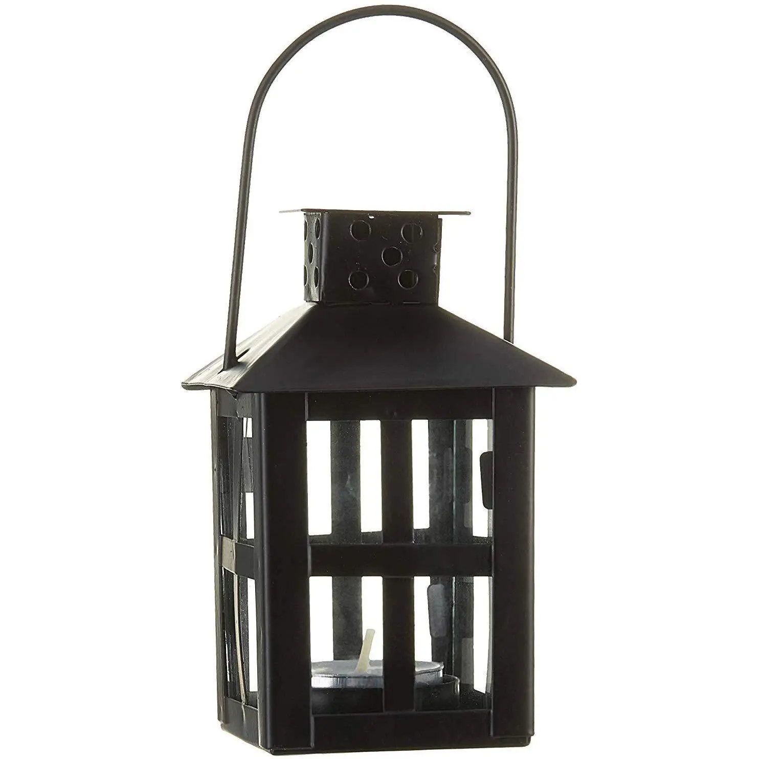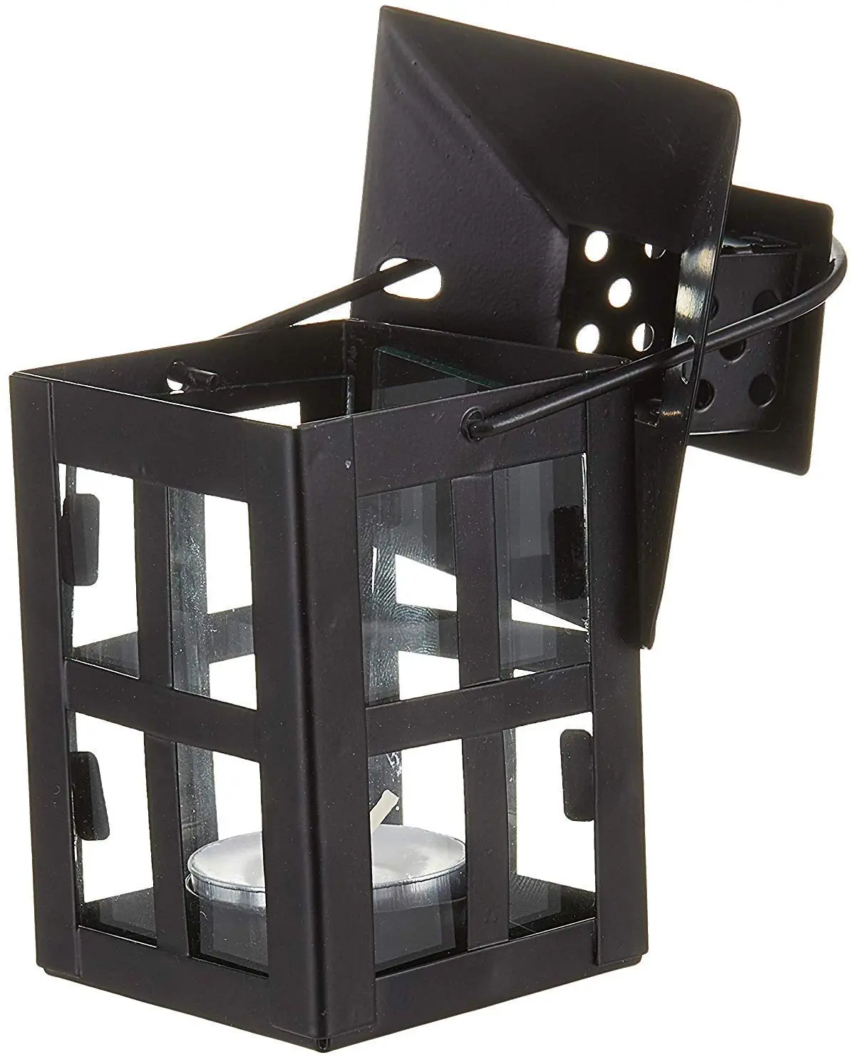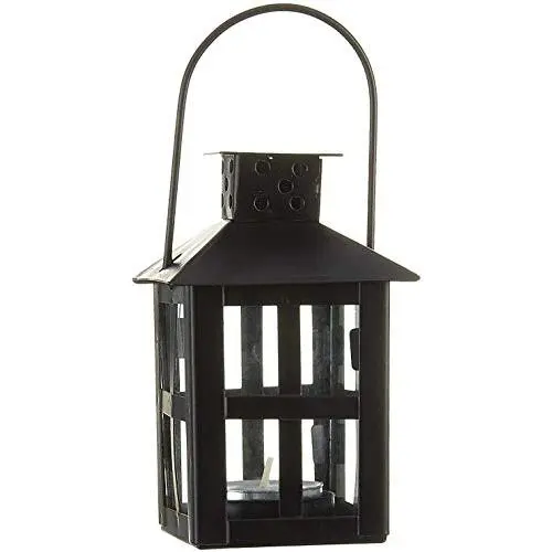 Kate Aspen Decorative Lanterns - Set of 2 - Distressed Metal Vintage Mini Wedding Lantern, Centerpiece for Wedding Table, Accent Piece and Home Decor, Wedding Favors and Baby Shower Favors (Black)