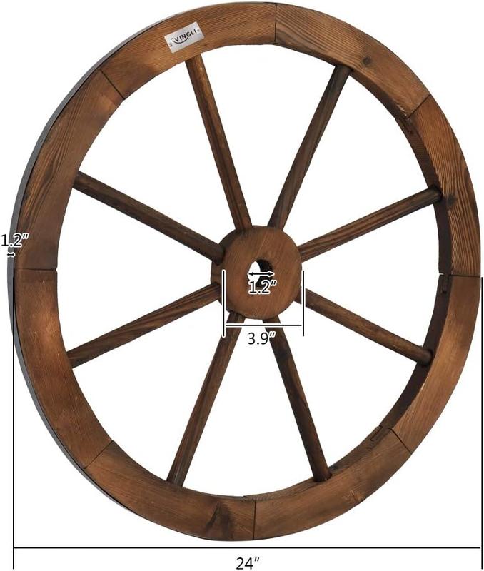 ·Item shipped pre-assembled. This set of 2 Wagon wheels measure 24” diameter and is 1.2” thick.