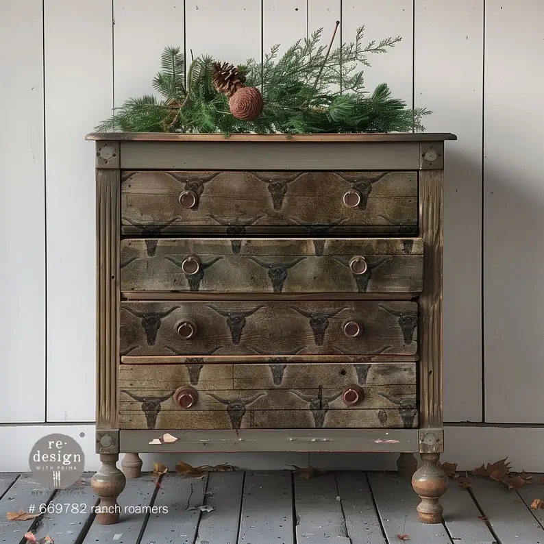 Redesign with Prima decoupage paper for furniture, Ranch Roamers, 3 sheets, each measuring 19x30".