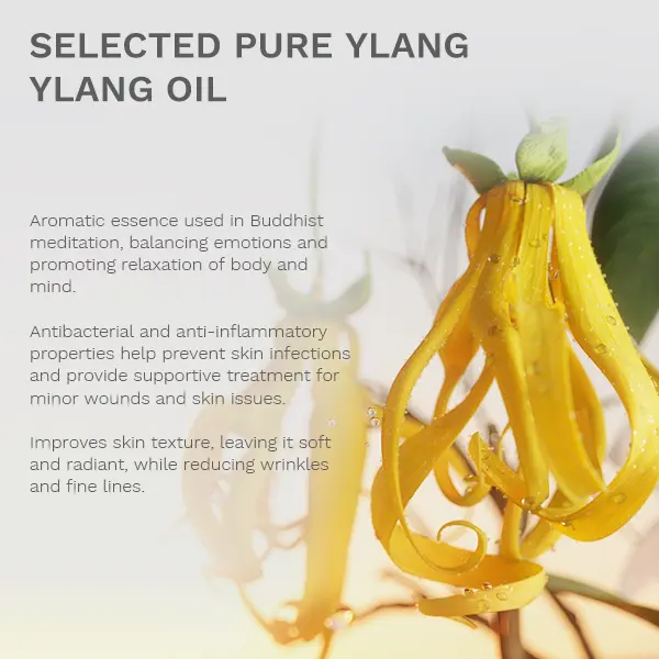 Pure ylang-ylang oil, calming and soothing, helps maintain skin stability.