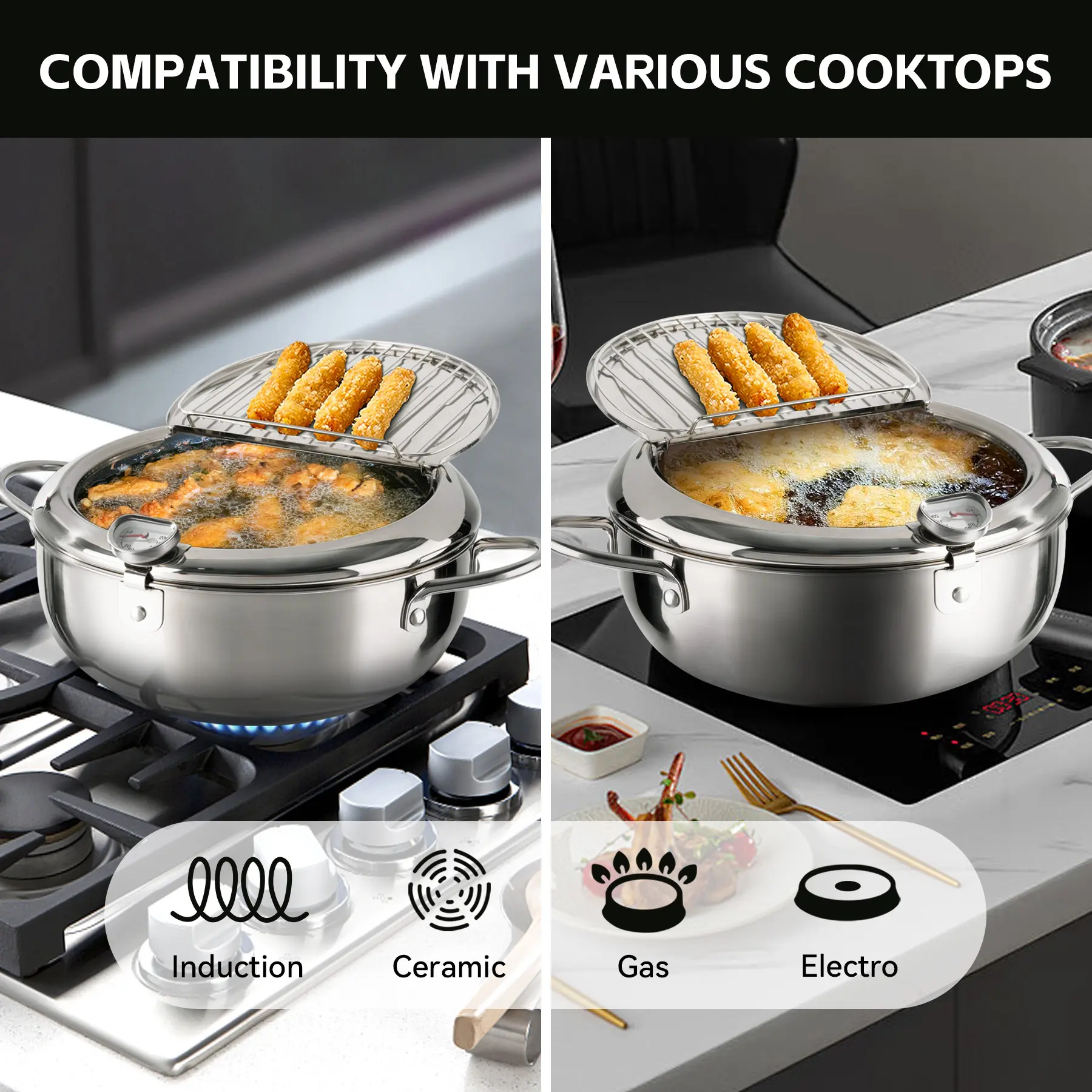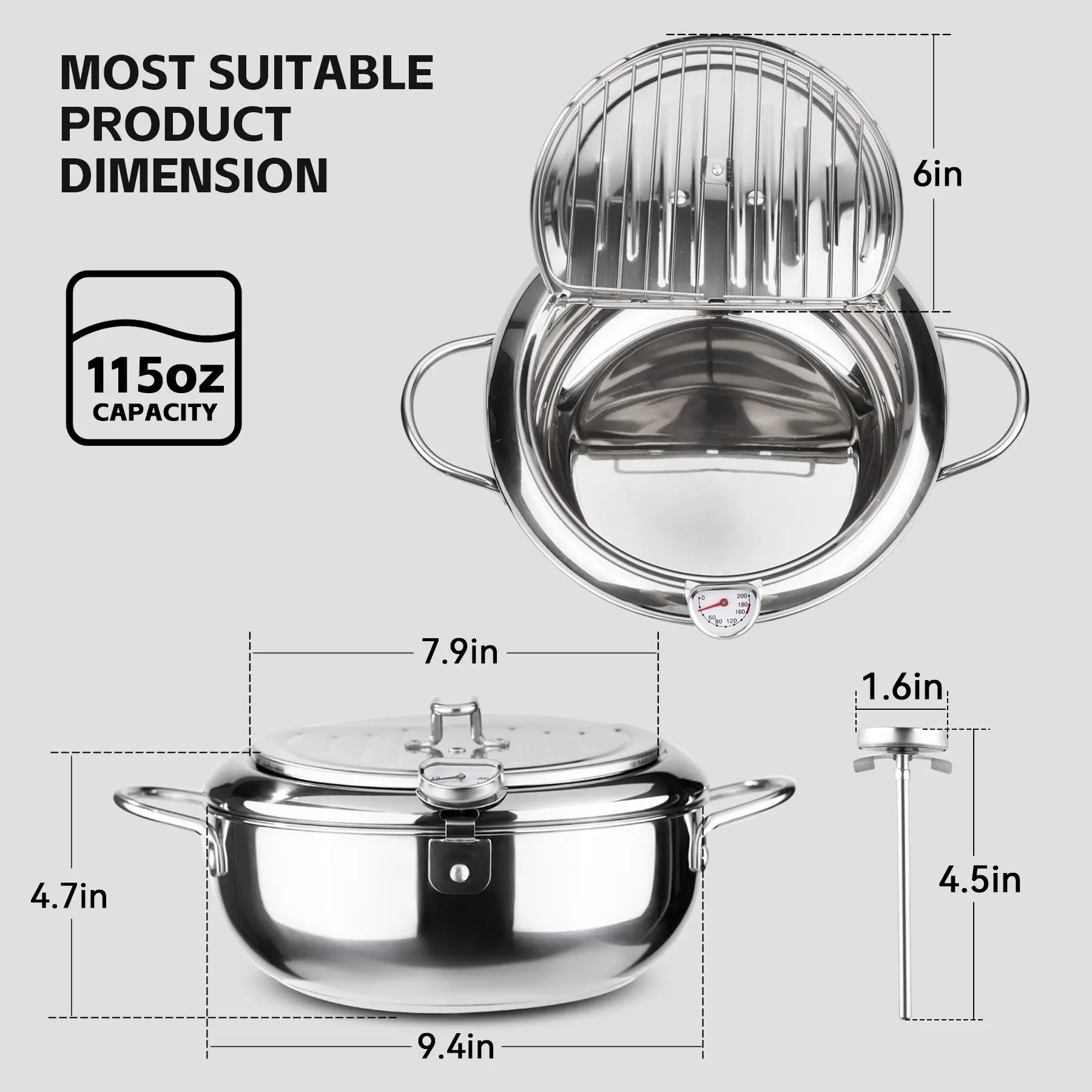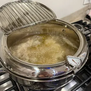 ·HIGH-QUALITY MATERIAL: Our deep fryer pot is made of high-quality 304 stainless steel, which is durable. This tempura fryer withstands high heat, and the heat in the pot remains even. It is compatible with all cooktops, including induction cooker, electric stoves, gas.