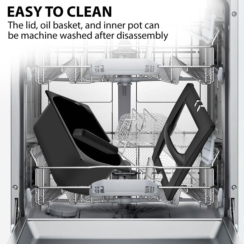 ·Rapid Heating: One of the standout features of this oil fryer is its hidden, embedded heating element. This innovative design ensures fast and even heating, allowing you to achieve perfect crispness in your fried foods. No more waiting around for the oil to heat up - this deep fryer gets the job done quickly and efficiently.