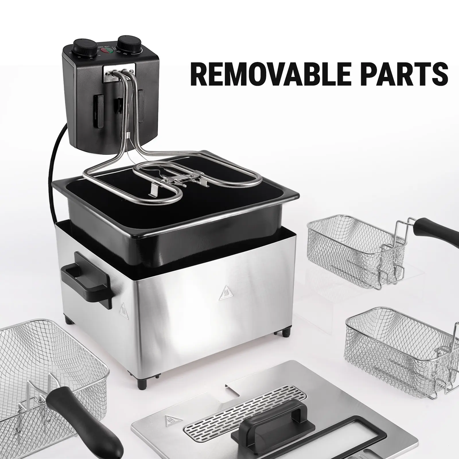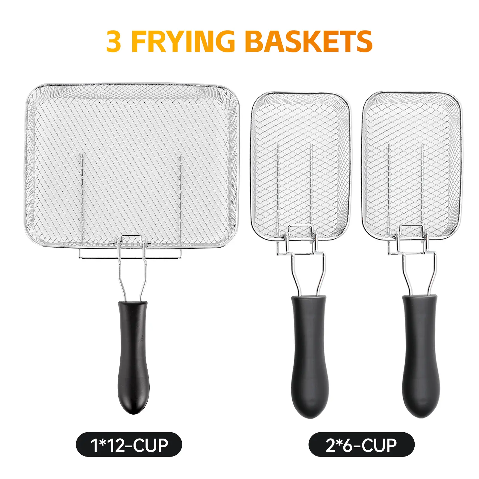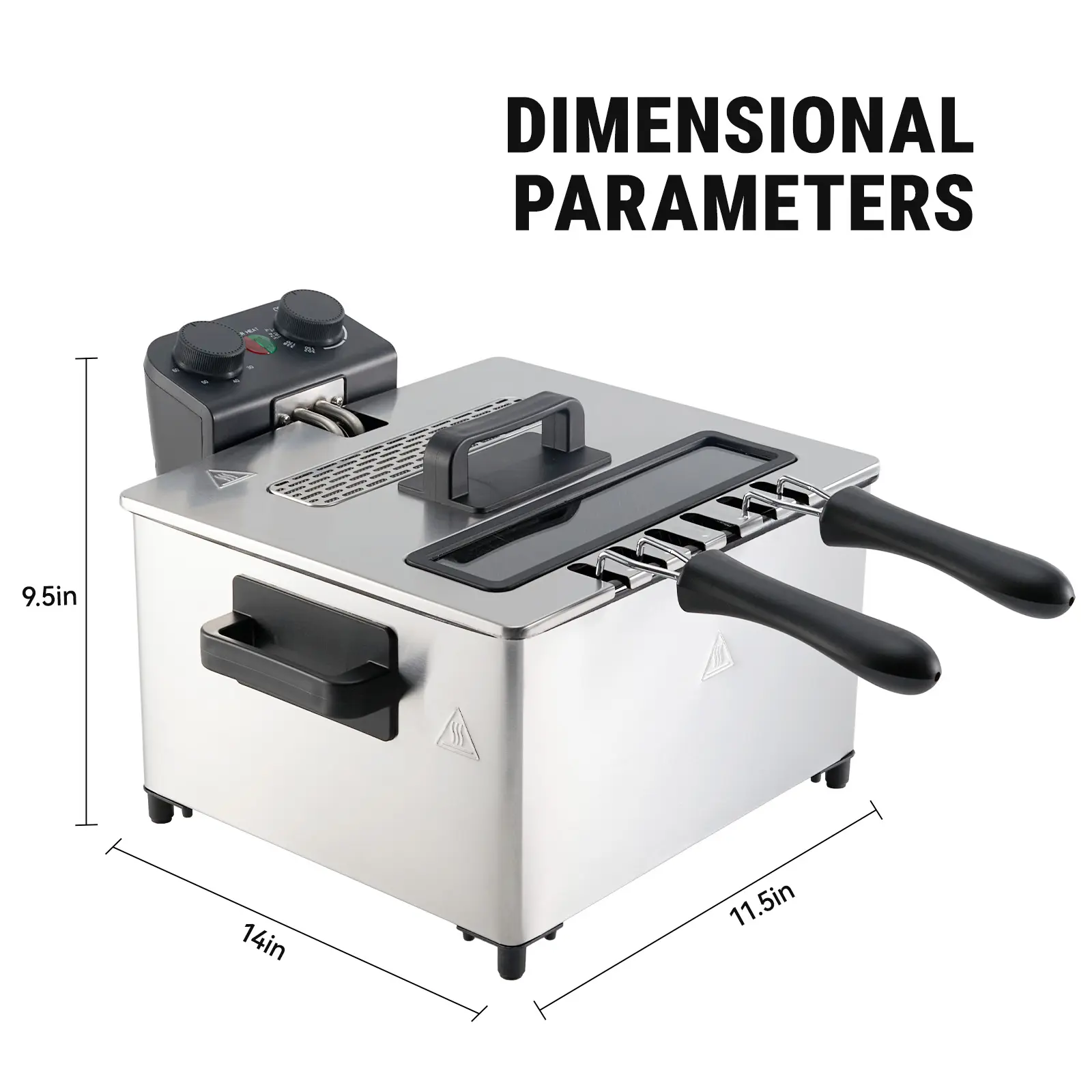 Solid home fryer for the price. Heats up quickly and the dual baskets make it easy to cook fries and chicken at the same time. Temperature control is consistent and the stainless build feels sturdy. Great for small batches and simple frying.