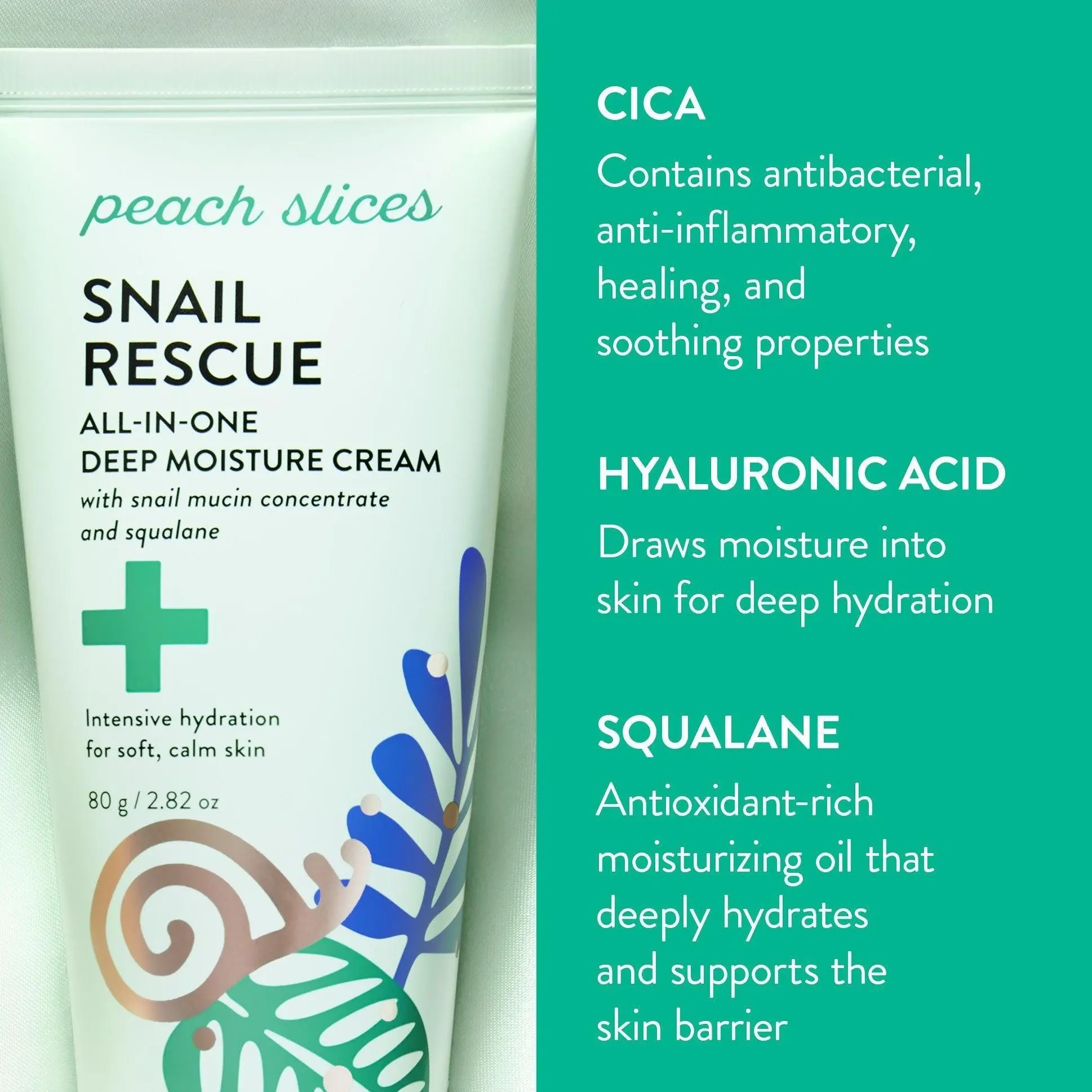 Meet your new skin savior: Snail Rescue All-in-One Deep Moisture Cream – a rich, lightweight moisturizer powered by supercharged snail mucin to visibly fight dryness, dark spots, zits, and more.