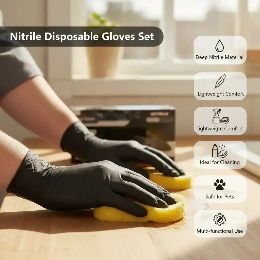 Deep Nitrile Disposable Gloves, Lightweight, Home Cleaning, Pet Care, Dyeing, Lead-Free Alcohol-Free, Multi-Functional Household Kitchen Gloves