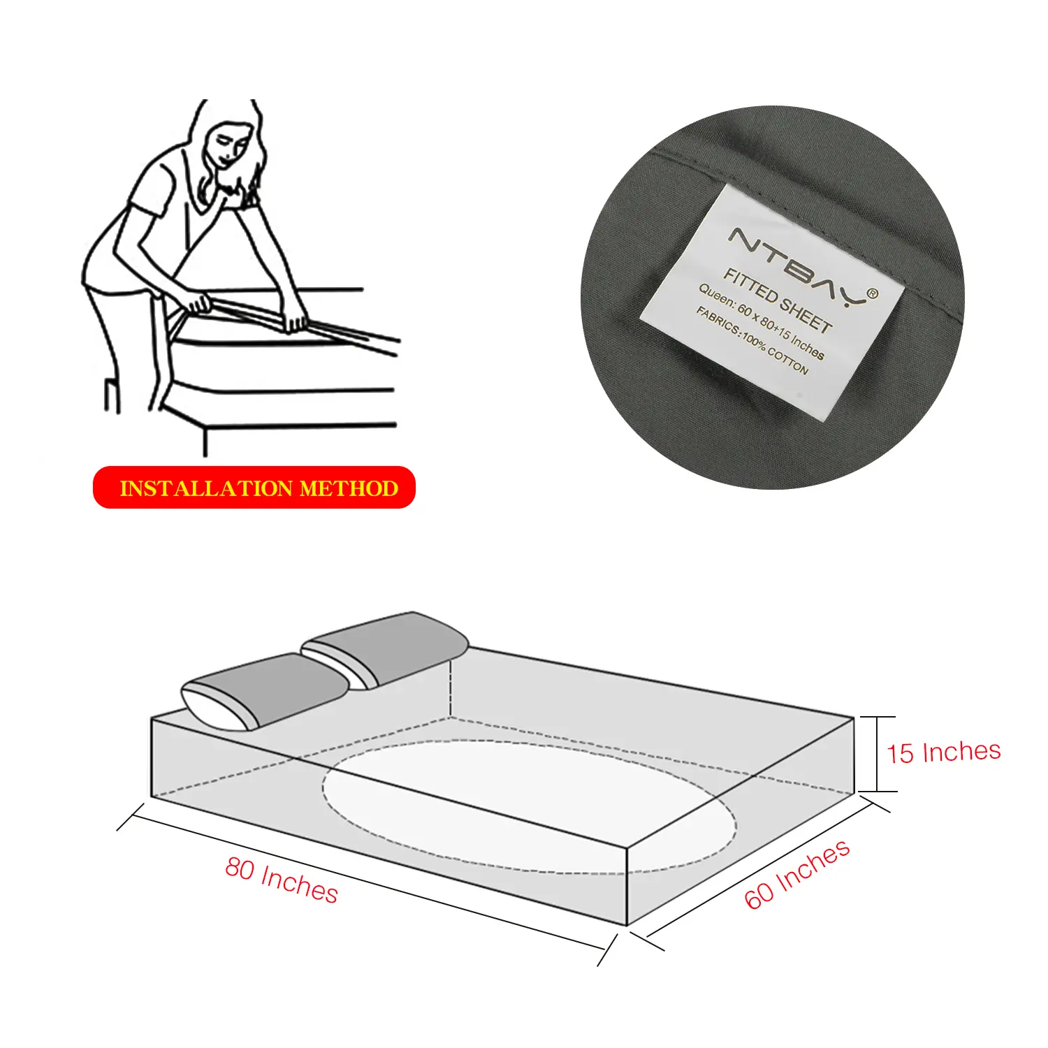 Our NTBAY fitted sheet is crafted from brushed microfiber, ensuring unparalleled softness. It boasts high tensile strength, making it strong and durable. The fabric resists shrinking and maintains its brightness. This material choice guarantees a luxurious feel under your sheets, enhancing your sleeping experience.