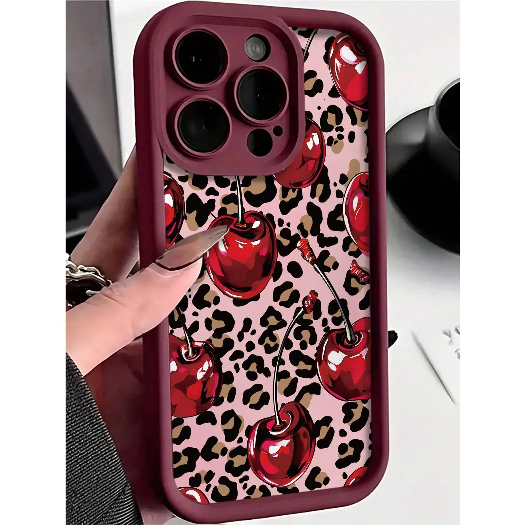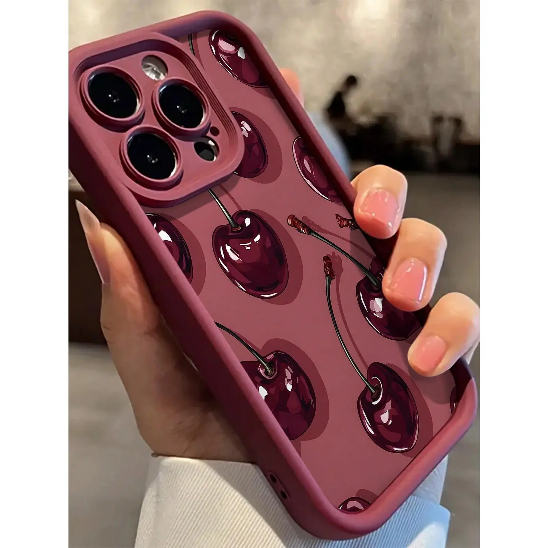 A stylish deep red cherry pattern soft TPU shockproof anti-drop full-coverage phone case, compatible with iPhone 17/16/15/14/13/12/11/x/xs/xsmax, a gift for friends, family, and yourself.