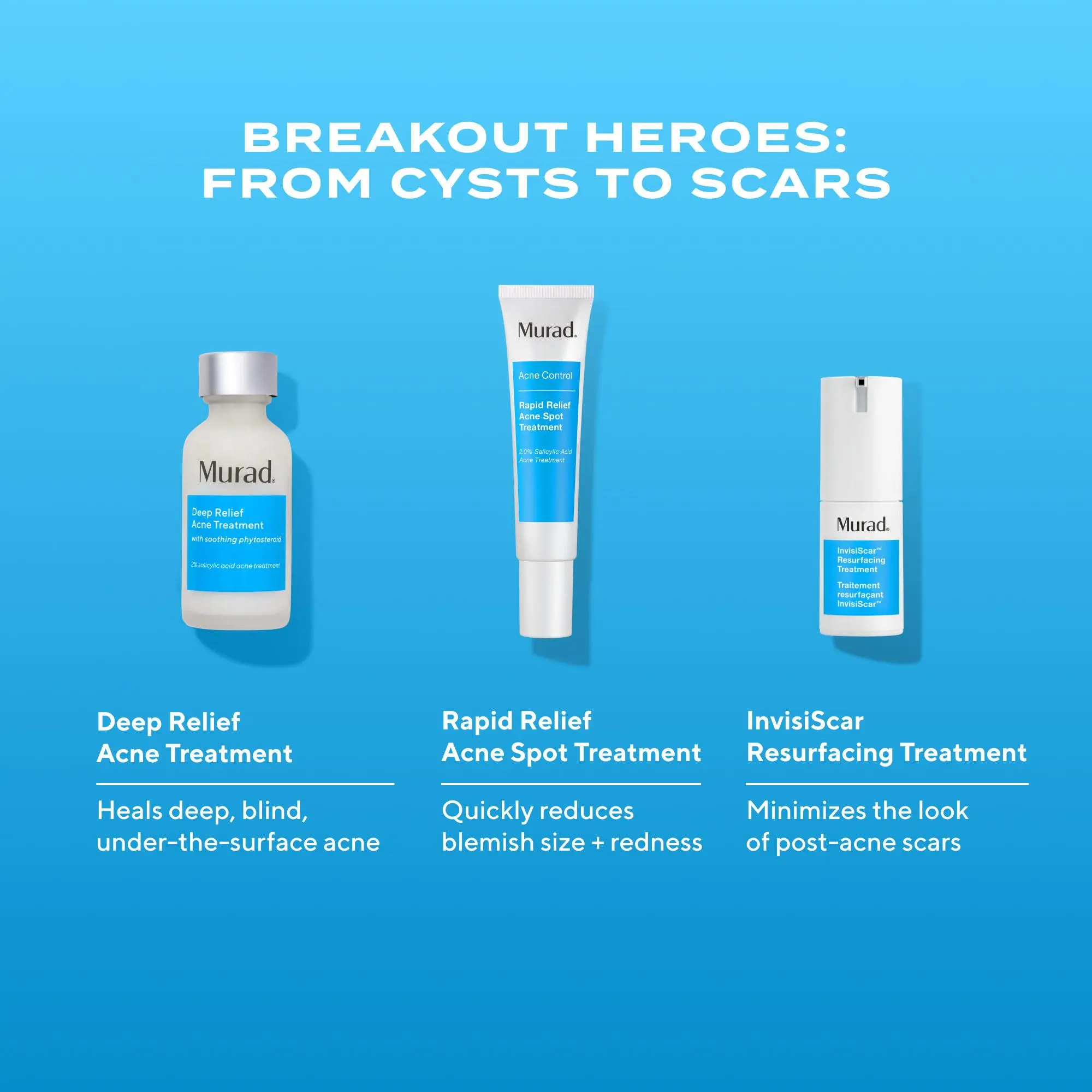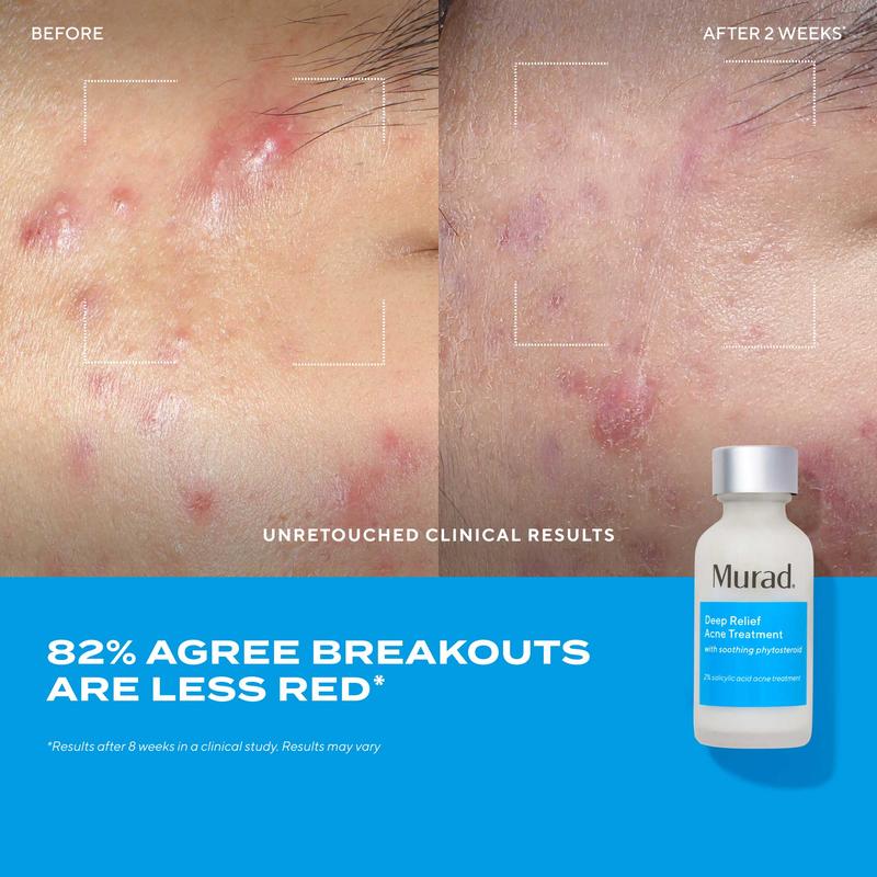 | Ingredients | Deep Relief Acne Treatment: Active ingredient: Salicylic Acid 2.0% Inactive ingredients: Water/Aqua/Eau, Propanediol, Glycerin, Pentylene Glycol, Salicylic Acid, Dicarprylyl Carbonate, Behenyl Alcohol, Dimethyl Isosorbide, Physalis Pubescens Fruit Juice, Albatrellus Confluens (Mushroom) Extract, Urea, Yeast Amino Acids, Trehalose, Inositol, Taurine, Betaine, Allantoin, Polylysine, Tocopherol, Pullulan, Caprylic/Capric Triglyceride, Lecithin, Phytosterols, Cetyl Alcohol, Stearyl Alcohol, Glyceryl Stearate, Polyglyceryl-10 Myrisstate, Menthyl Lactate, Xanthan Gum, Sclerotium Gum, Hydrogenated Lecithin, Leuconostoc/Radish Root Ferment Filtrate, Silica, Disodium EDTA, Sodium Hydroxide, Citric Acid |