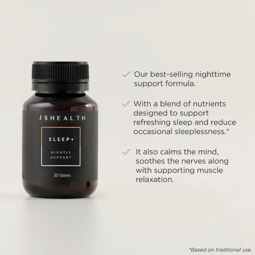 Our JSHealth Sleep+ Formula is your secret to a restful night. Calm the mind and relieve occasional nervous tension. Reduce disturbed and restless sleep. 🌙