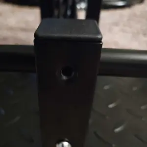 The bar you put your feet under, has NO hole in it to secure it to the frame. The pipes being held in placed by the two pads. They keep sliding & I have to keep pushing them back on. I have the bolt but no hole to put it in. I don’t want to send the whole machine back.