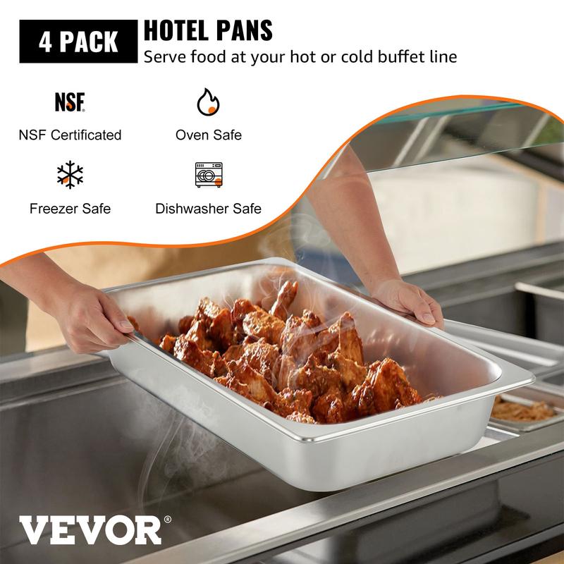 VEVOR 4 Pack Steam Table Pans 20.9 x 12.8 x 3.9 Inch Deep Steam Table Pan Full Size 13L Deep Food Container Stainless Steel Oven Tray Hotel Pans Anti-Jam Steam Table Food Pan