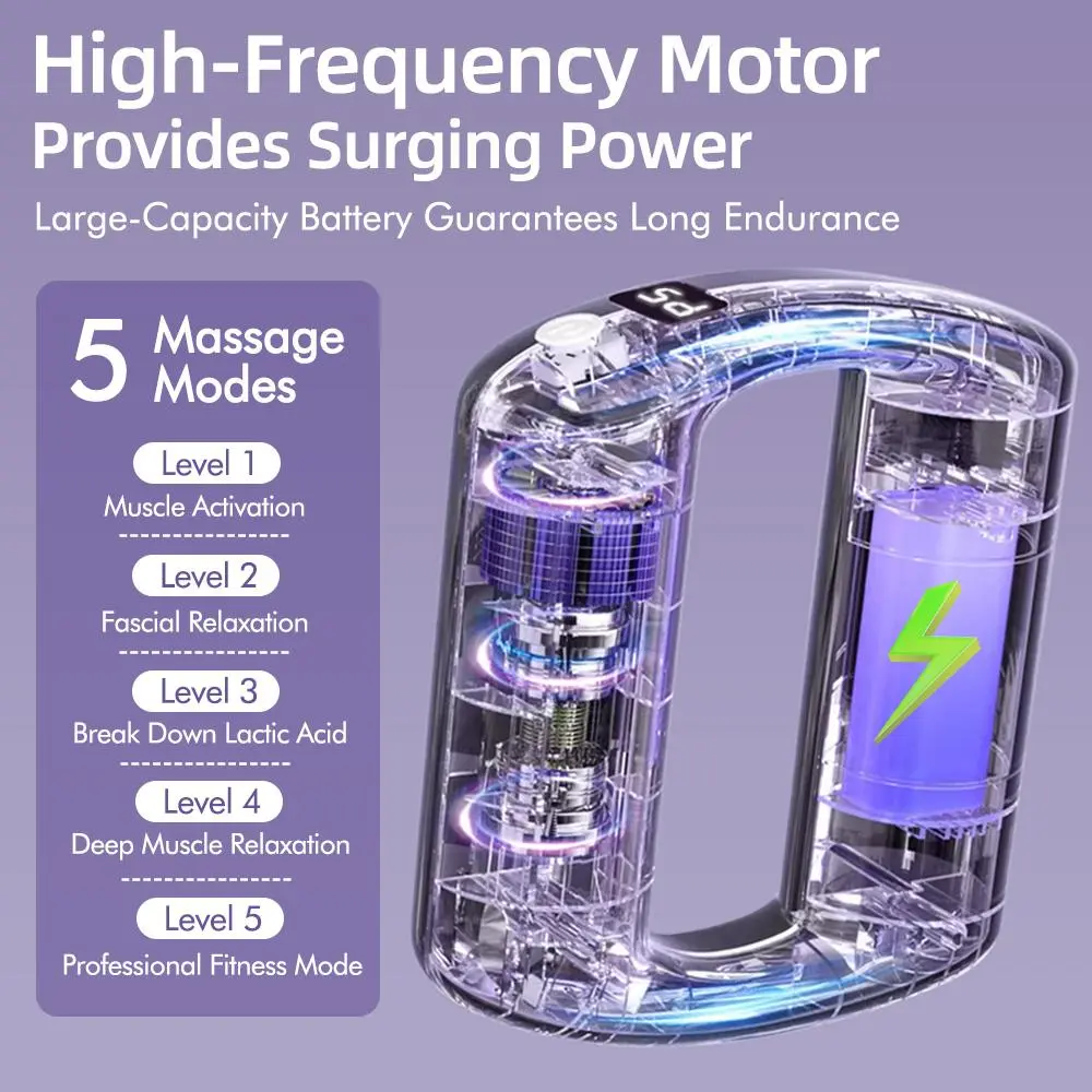 No need to worry about complicated setups: this portable massager fits seamlessly into your routine. It’s not about replacing workouts, but complementing them with targeted muscle relief. The ergonomic anti-slip handle ensures comfort, while the quiet operation lets you use it anywhere. With Type-C fast charging and a large-capacity battery, it runs for a week on a single charge—ready for daily use at home, the office, or on the go.