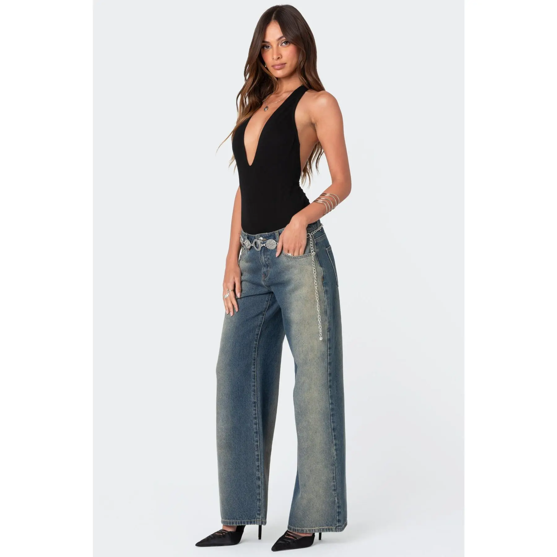 ·Plunging V neck