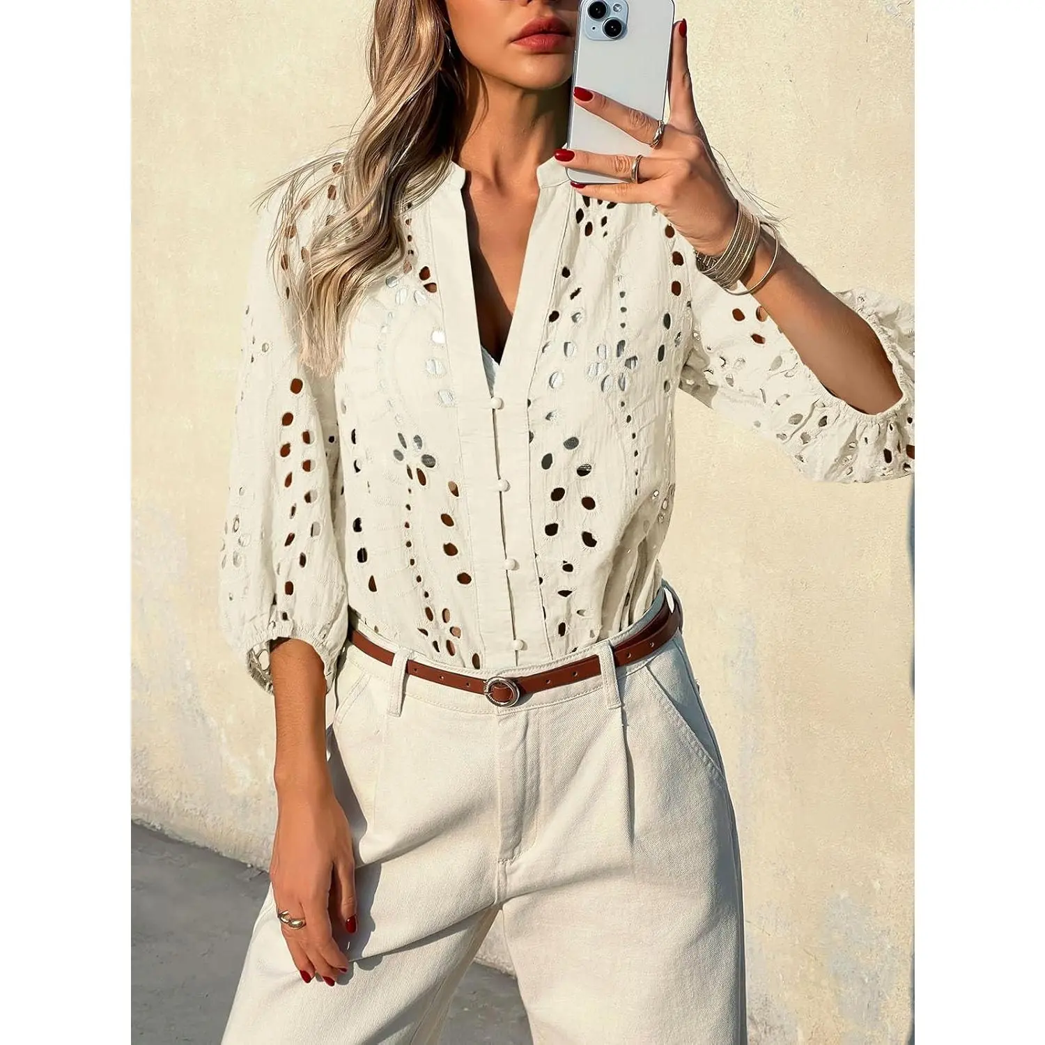 Material: The hollow out lace blouse is made of 100% cotton, which is comfortable, breathable, soft and elastic.