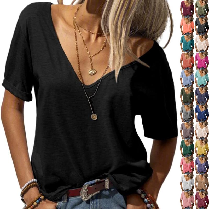 ·Features: Summer T shirt tops, Deep V-Neck, short sleeves,solid, loose, basic,simple Casual Style and Never out of fashion.
