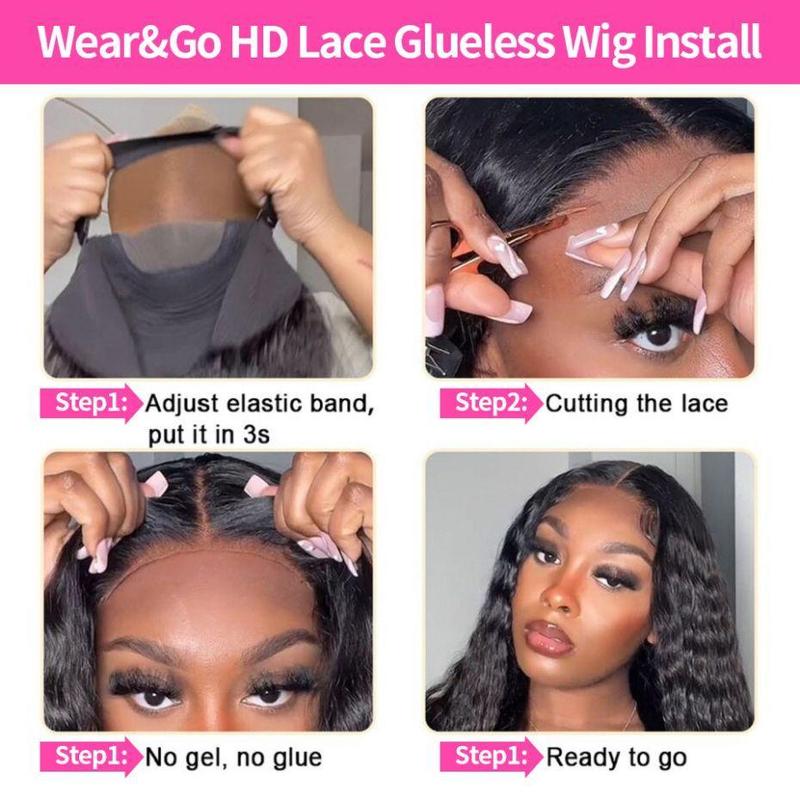 Bling Hair 6x4 Glueless Wigs Human Hair Pre Plucked Pre Cut Deep Water Wave HD Lace Front Wig Human Hair Pre Plucked For Beginners 3 Second To Wear