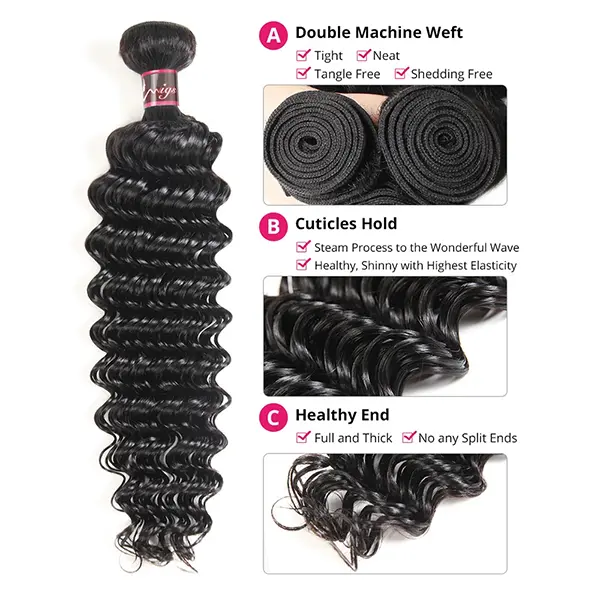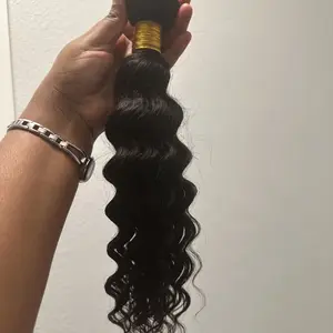 Deep Wave Virgin Human Hair Bundles – Soft, shiny, and with defined waves. 100% Remy human hair, 100g per piece, tangle-free and free of excessive shedding. Easy to style, color, or style. Perfect for everyday use or any occasion.