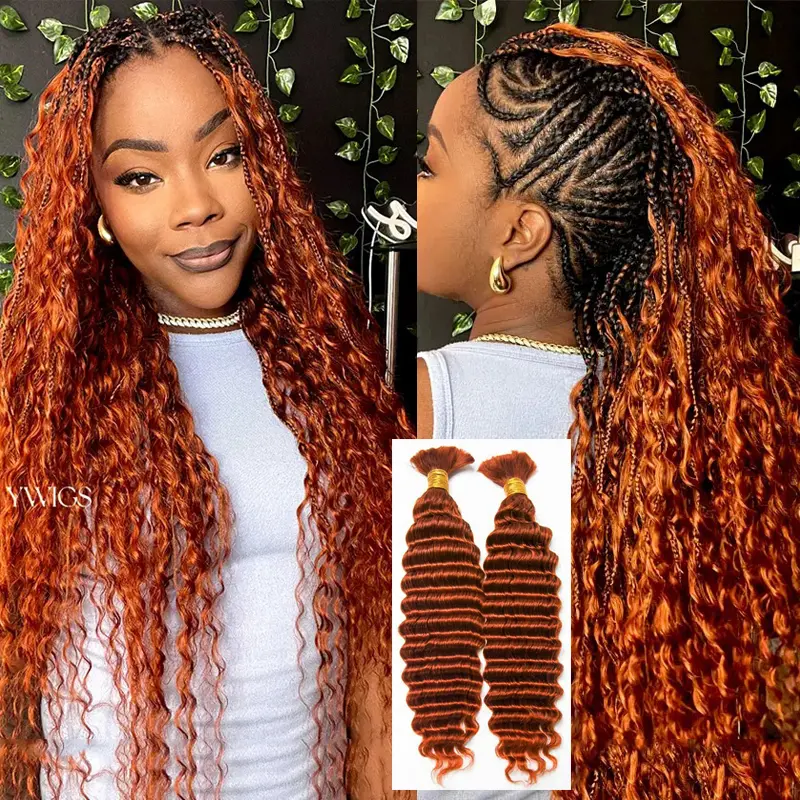 YWIGS #350 Ginger Deep Wave Human Hair Bulk Hair Extensions for Braiding 100g Per Bundle