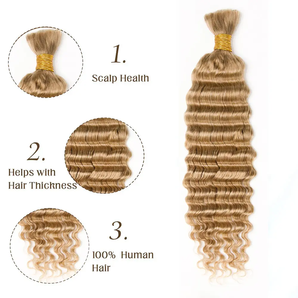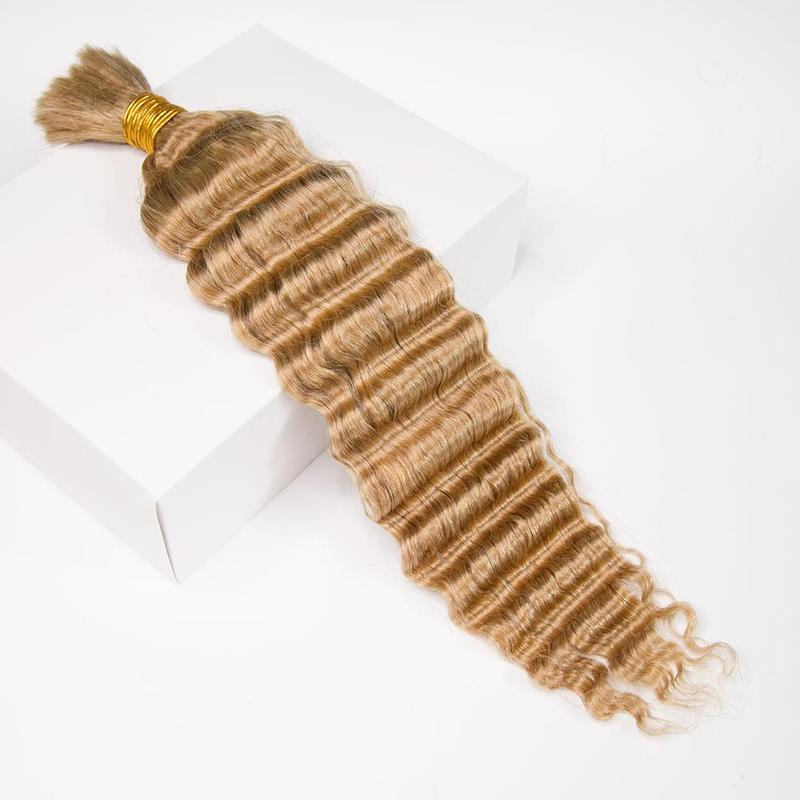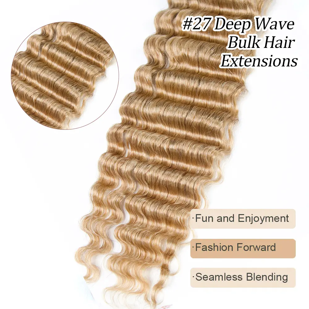 Tired of buying pretty hair online only to end up with shedding, tangles, and disappointment? Our #27 Deep Wave bulk human hair is the upgrade you’ve been looking for. 100% virgin, soft, and full from root to tip, with no weft—just pure, premium strands ready for knotless braids, locs, twists, crochet, and more. The honey blonde #27 shade adds that sun-kissed glow, while the deep wave pattern gives you natural volume and bounce that lasts. Slay every style with confidence—no filters needed.