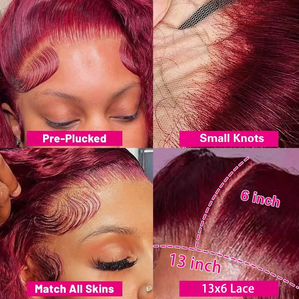 Burgundy Color, 13×6 Full Lace Frontal , 32inch