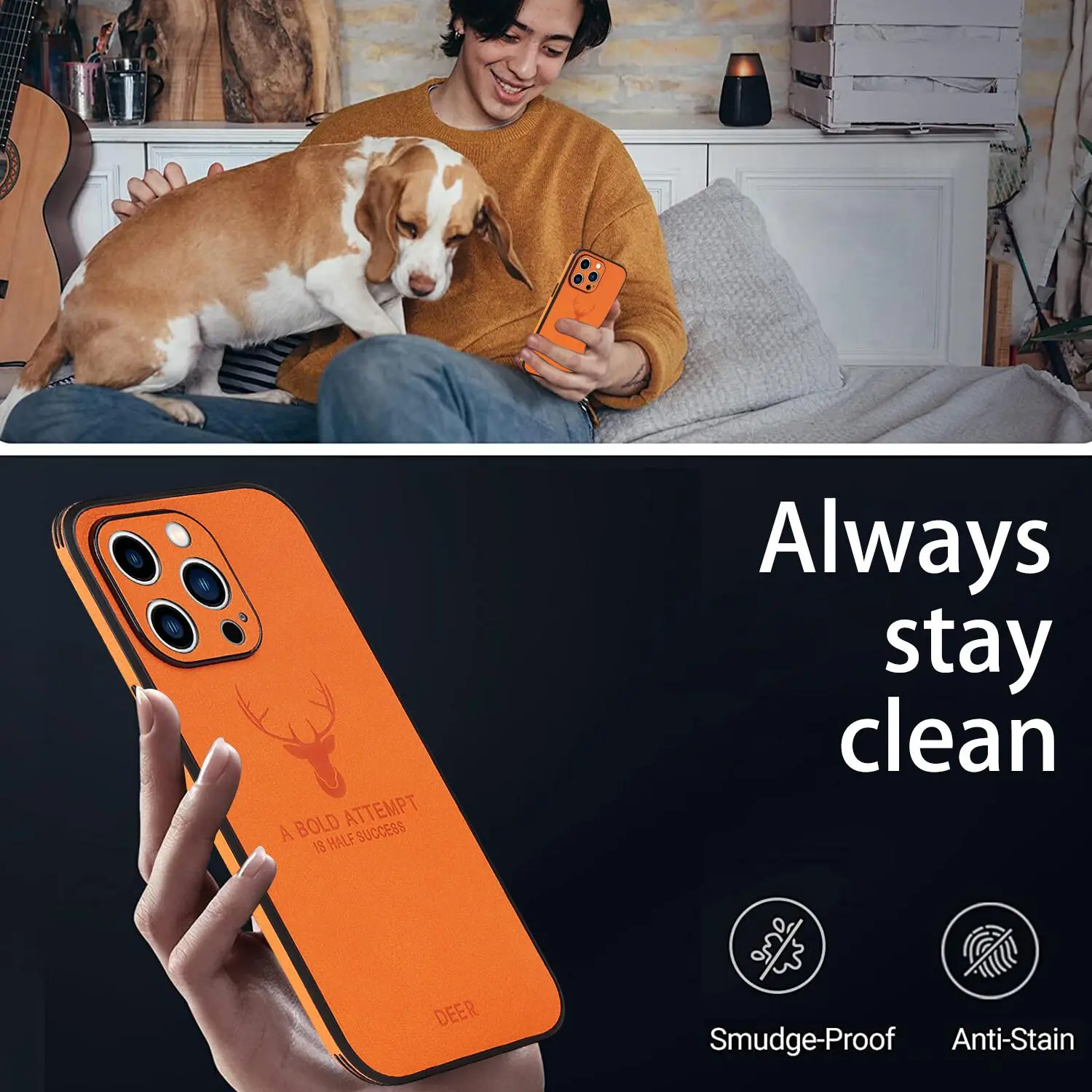 Stylish Design - Adorned with elegant deer head embossing, plus vivid color options (orange, red, brown, blue, black) to match your personal style and elevate your phone’s look.
