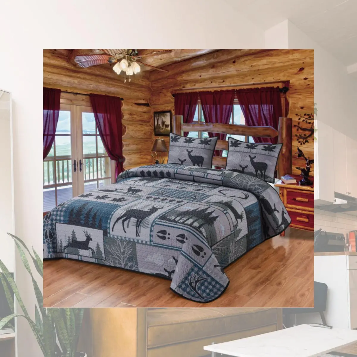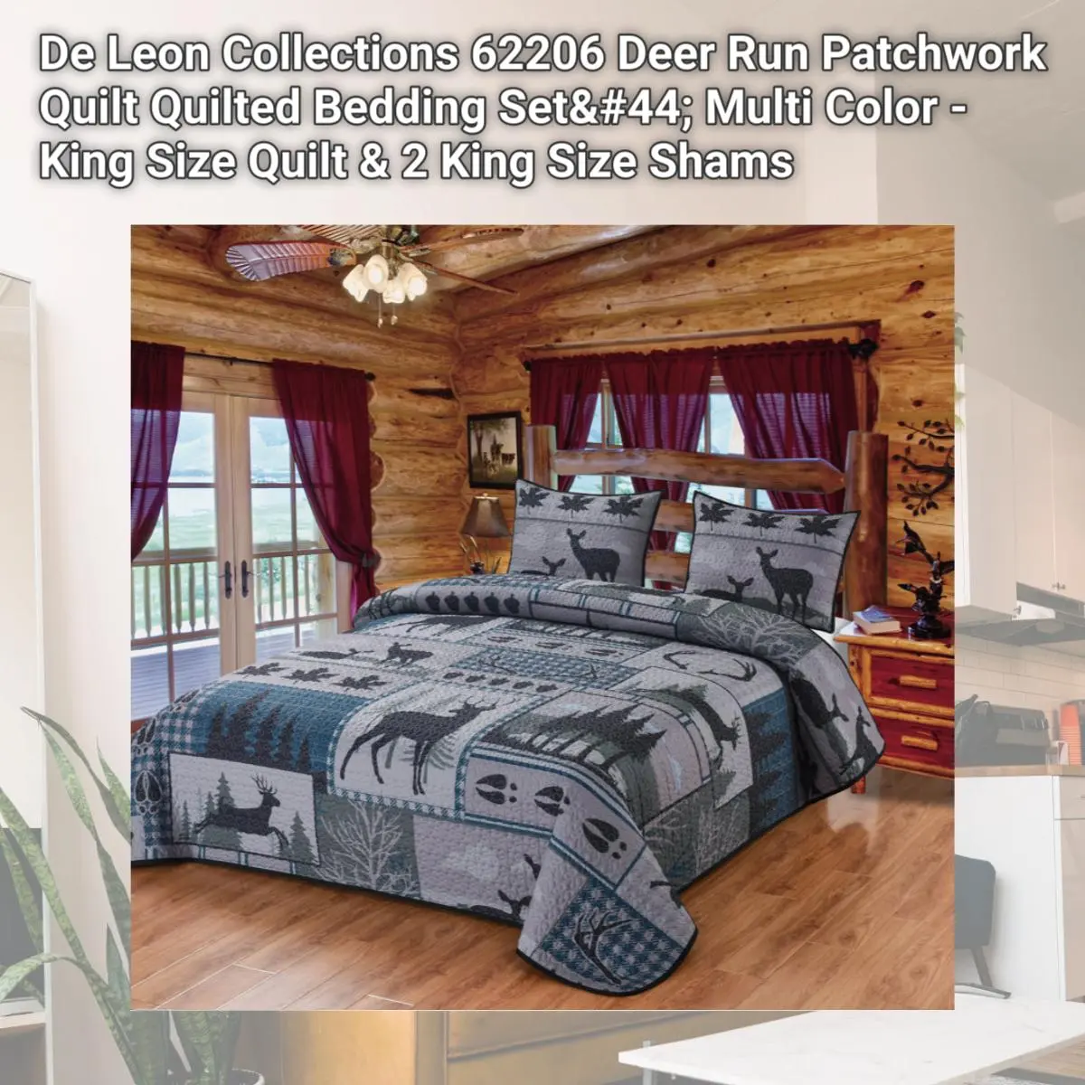 De Leon Collections Deer Run Patchwork Quilt Quilted Bedding Set, Multi Color - King Size Quilt & 2 King Size Shams