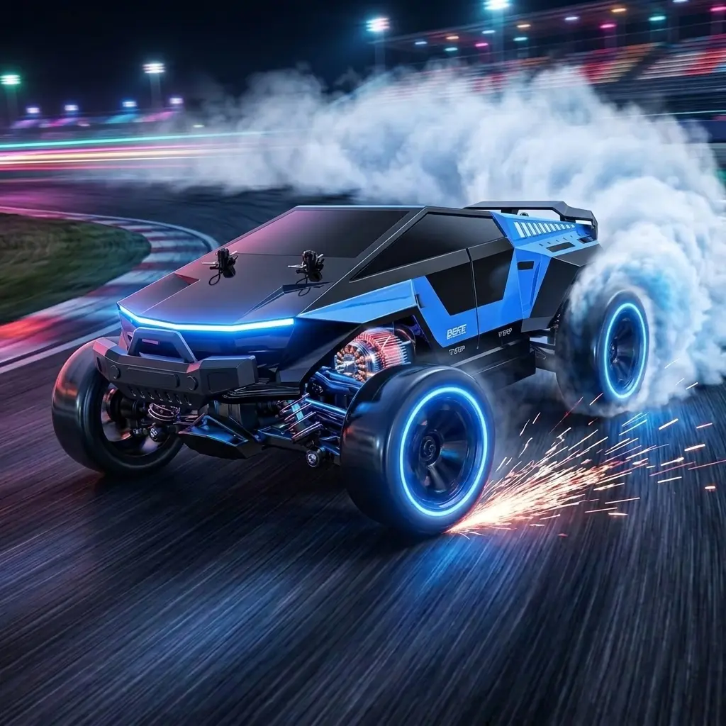 Race longer with 2 x 1500mAh high-capacity batteries for up to 40 minutes of playtime. The sleek body shell and glowing LED lights create a futuristic racing look that stands out day or night. A perfect gift for kids, teens, and RC enthusiasts.