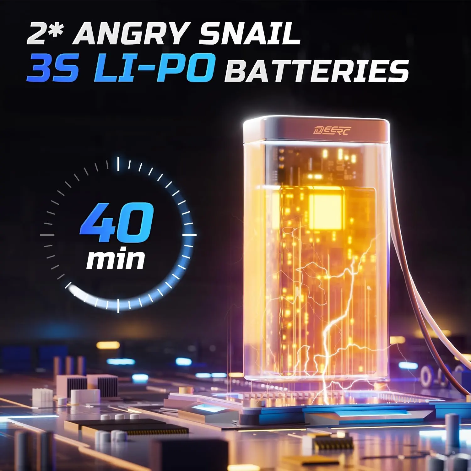Equipped with a 3S 11.1V 2000mAh Angry Snail LiPo battery, this RC car offers 5% higher energy density and 10% longer battery life. Dual batteries provide an insane 40 minutes of nonstop action.