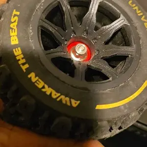 Designed for all terrains, this truck boasts adjustable oil-filled shocks (72.3MM-79.5MM) and 111mm high-traction tires. It comes with a bonus set of sand tires and a wheelie bar for improved off-road control. Product dimensions: 12.6 x 9.06 x 4.88 inches. Item weight: 5.51 pounds.