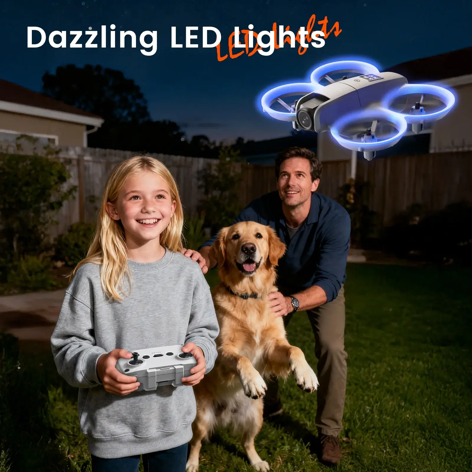 Dual Light System & Portability: Lightweight design with adjustable body and nose lights ensures visibility and safety for both day and night flights.