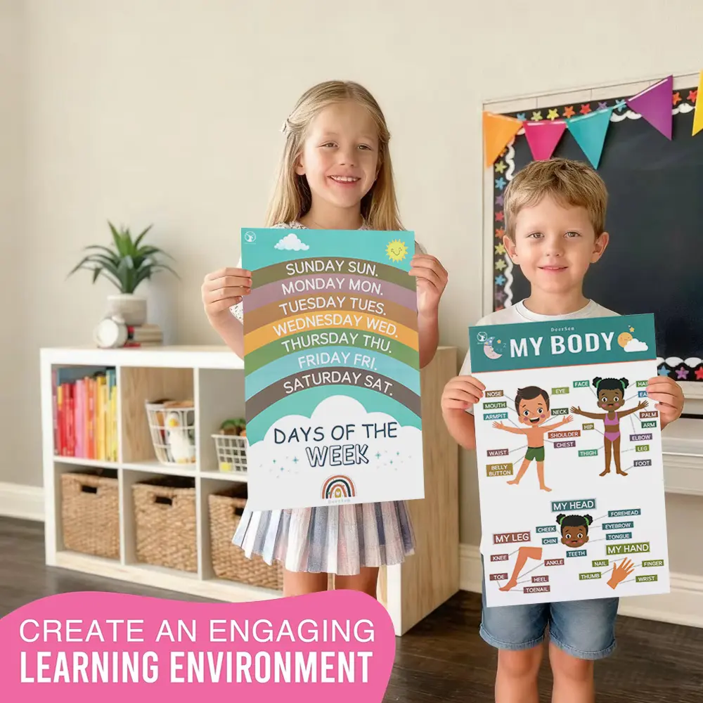 These toddler educational posters feature bright, bold, high-resolution color printing and clean layouts. They visually reinforce essential topics without overwhelming young learners. Great for preschool and classroom use, they stimulate imagination and enhance focus.