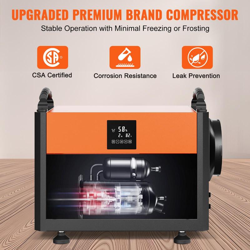 VEVOR 156 Pints Commercial Dehumidifier with Drain Hose for Crawl Spaces,  Basements Warehouse & Job Sites, Large Capacity Dehumidifier for Water Damage Restoration, Auto Defrost, CSA Listed