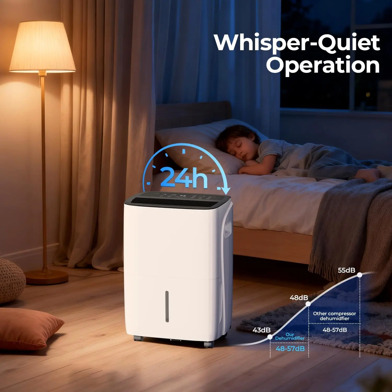 ·Ultra-Quiet Operation: Runs at less than 43dB, ideal for bedrooms, offices, and quiet spaces.