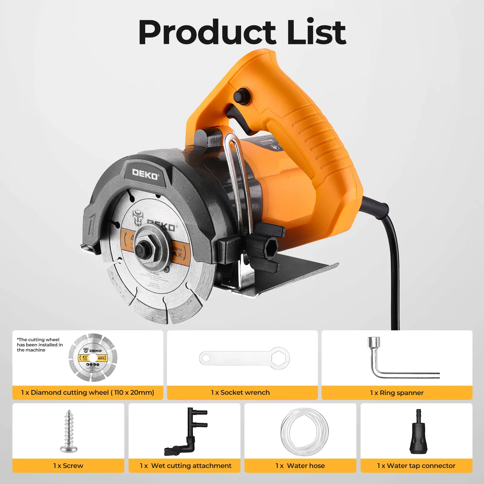 Precise Cutting: Equipped with a 110mm diamond blade, sharp and durable with smooth cutting edges