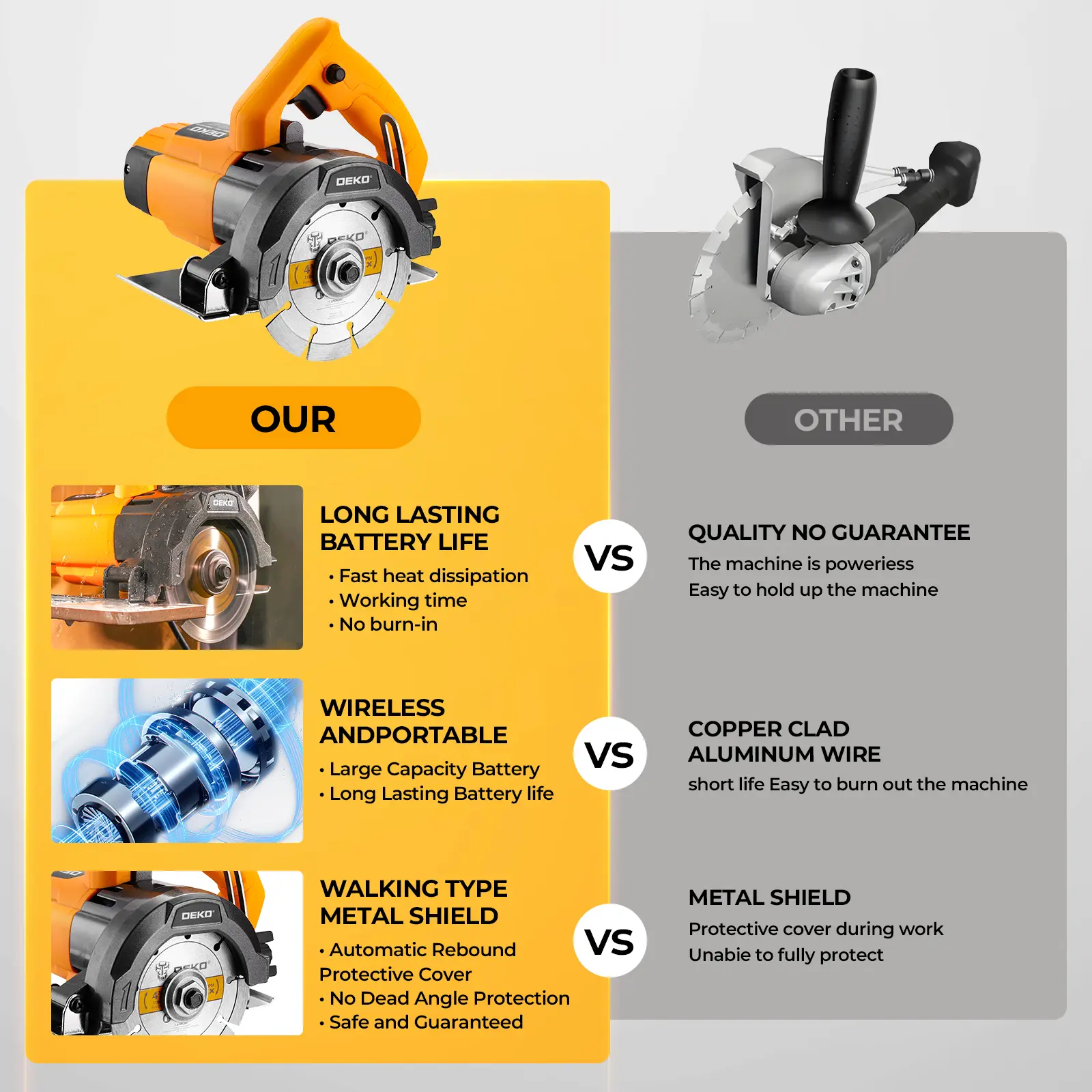 Multi-Material Application: Capable of cutting wood, tile, stone, marble, and more