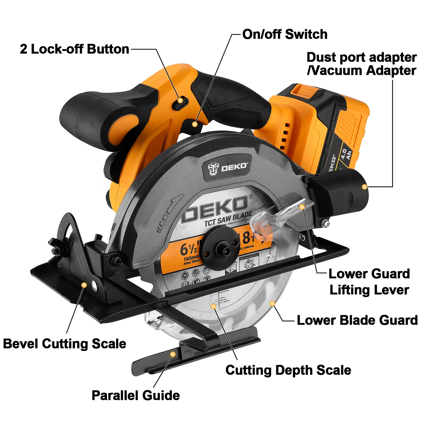 DEKO 20V Cordless Circular Saw With 4.0Ah Battery And Charger, 5500 RPM No Load Speed, Lightweight Design, 165mm 6 1/2 Inch 800W Electric Saw For Wood, Plastic, Metal Cutting And Decorative ConstructionDEKO 20V Cordless Circular Saw With 4.0Ah Battery And Charger, 5500 RPM No Load Speed, Lightweight Design, 165mm 6 1/2 Inch 800W Electric Saw For Wood, Plastic, Metal Cutting And Decorative ConstructionDEKO 20V Cordless Circular Saw With 4.0Ah Battery And Charger, 5500 RPM No Load Speed, Lightweight Design, 165mm 6 1/2 Inch 800W Electric Saw For Wood, Plastic, Metal Cutting And Decorative ConstructionDEKO 20V Cordless Circular Saw With 4.0Ah Battery And Charger, 5500 RPM No Load Speed, Lightweight Design, 165mm 6 1/2 Inch 800W Electric Saw For Wood, Plastic, Metal Cutting And Decorative Construction