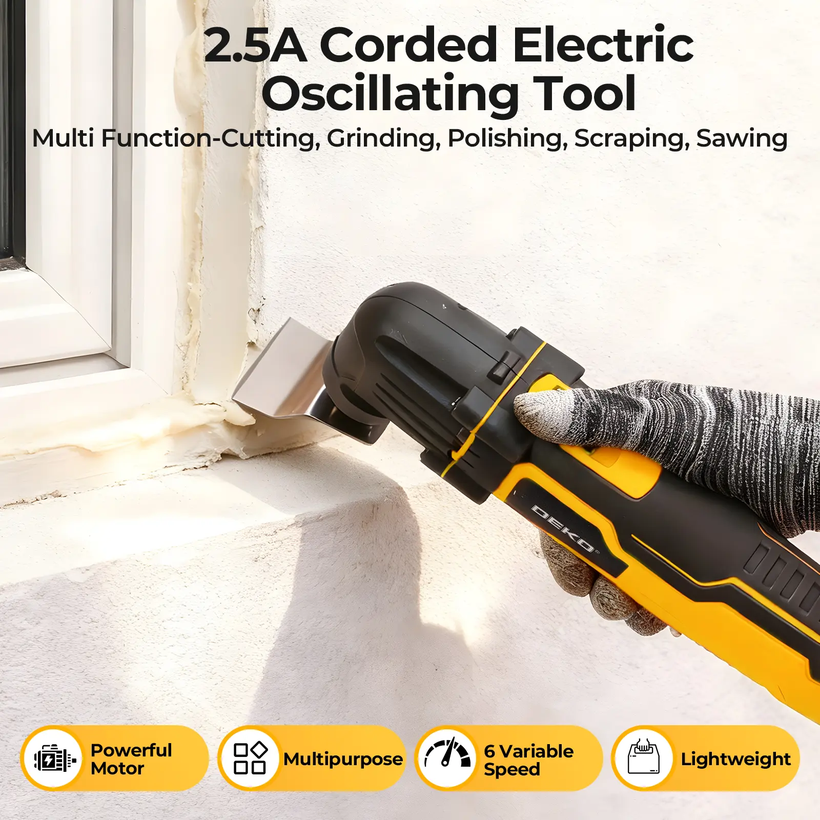 2.5A / 300W Powerful Motor: Delivers strong power for efficient cutting, sanding, and scraping across various materials.