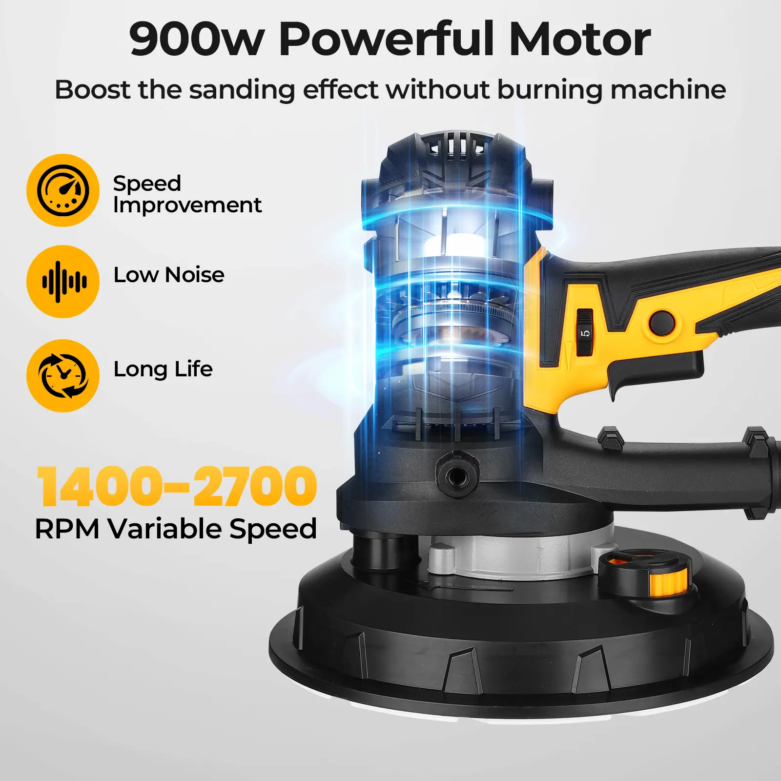 ·900W High-Power Motor – Delivers strong performance with adjustable speed from 1400–2700 RPM.