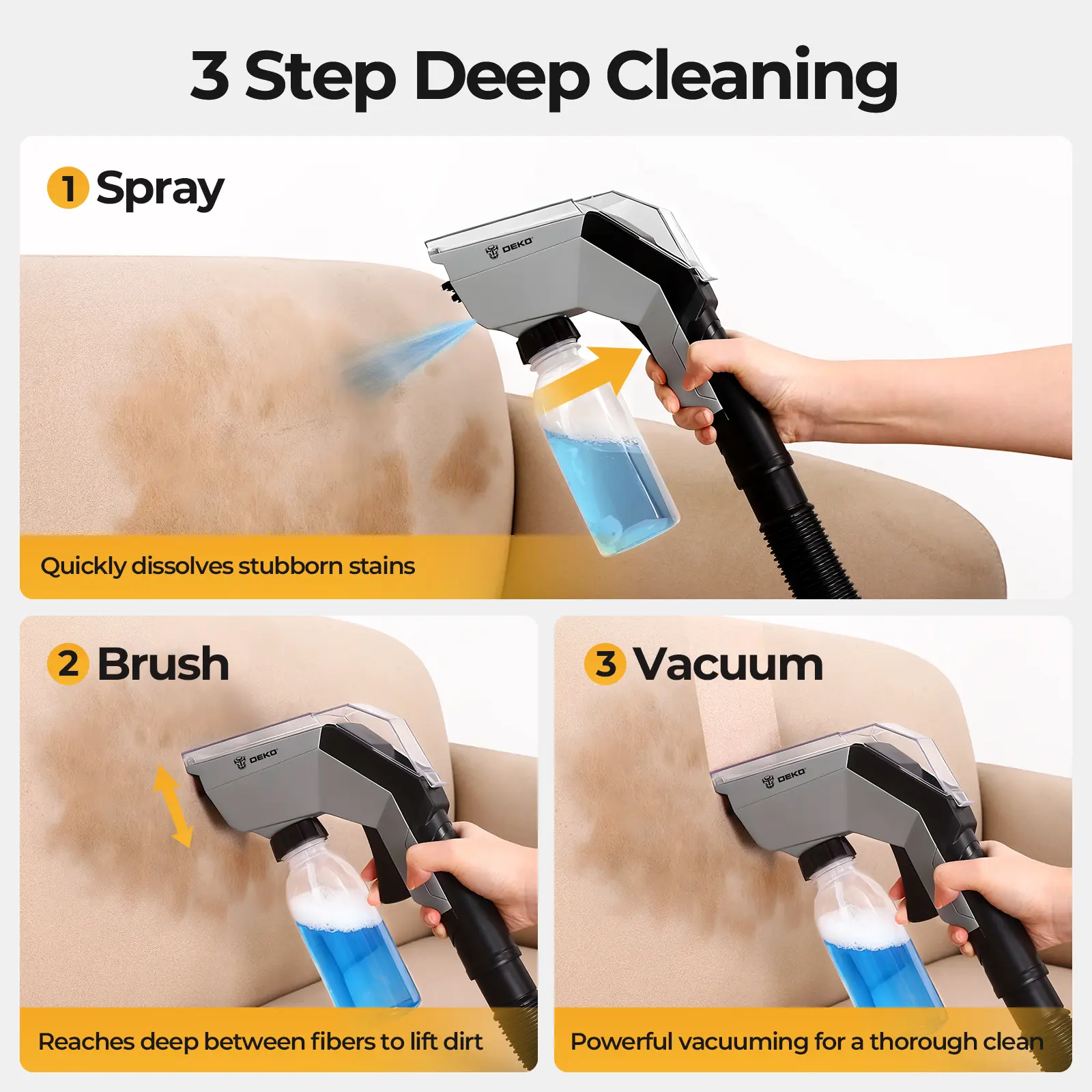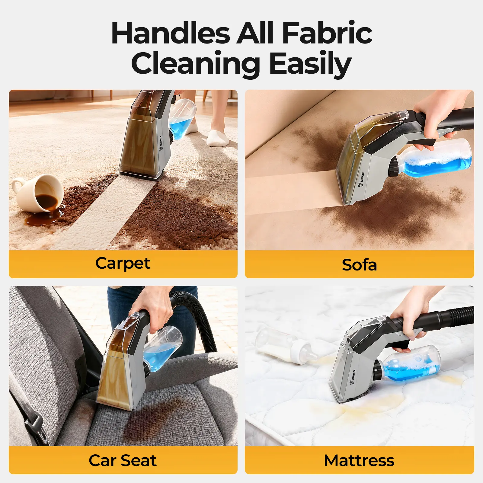·Wide ApplicationIdeal for sofas, carpets, mattresses, chairs, and car seats, keeping every corner of your home clean and fresh.
