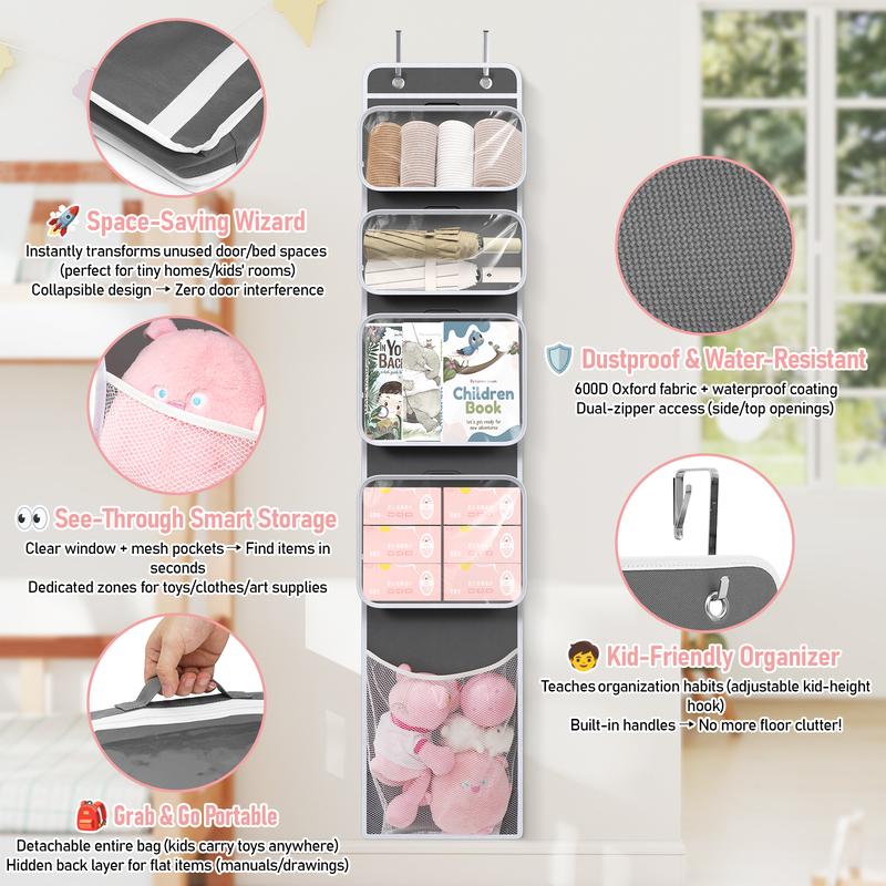 Over-the-door toy organizer designed to help busy moms store kids’ toys, reduce clutter, and make cleanup easier. Over door storage organizer. #storage #storagehacks #doororganizer #organization #tiktokshopcreatorpicks