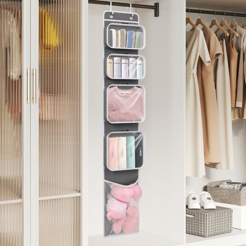 Over-the-door storage organizer with multiple compartments for organizing clothes, accessories, and household items in small spaces. #storage #storagehacks #doororganizer #organization #tiktokshopcreatorpicks