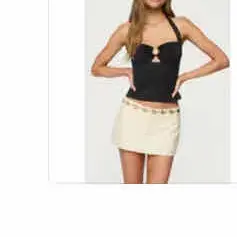 SO cute and it’s half off rn‼️  @Edikted #ootd #fashiontiktok #fyp #summeroutfit #outfitinspo  #tanktop #jeans #viral #trendingoutfits #haltertop #lowrise #seashell #gold #beachy