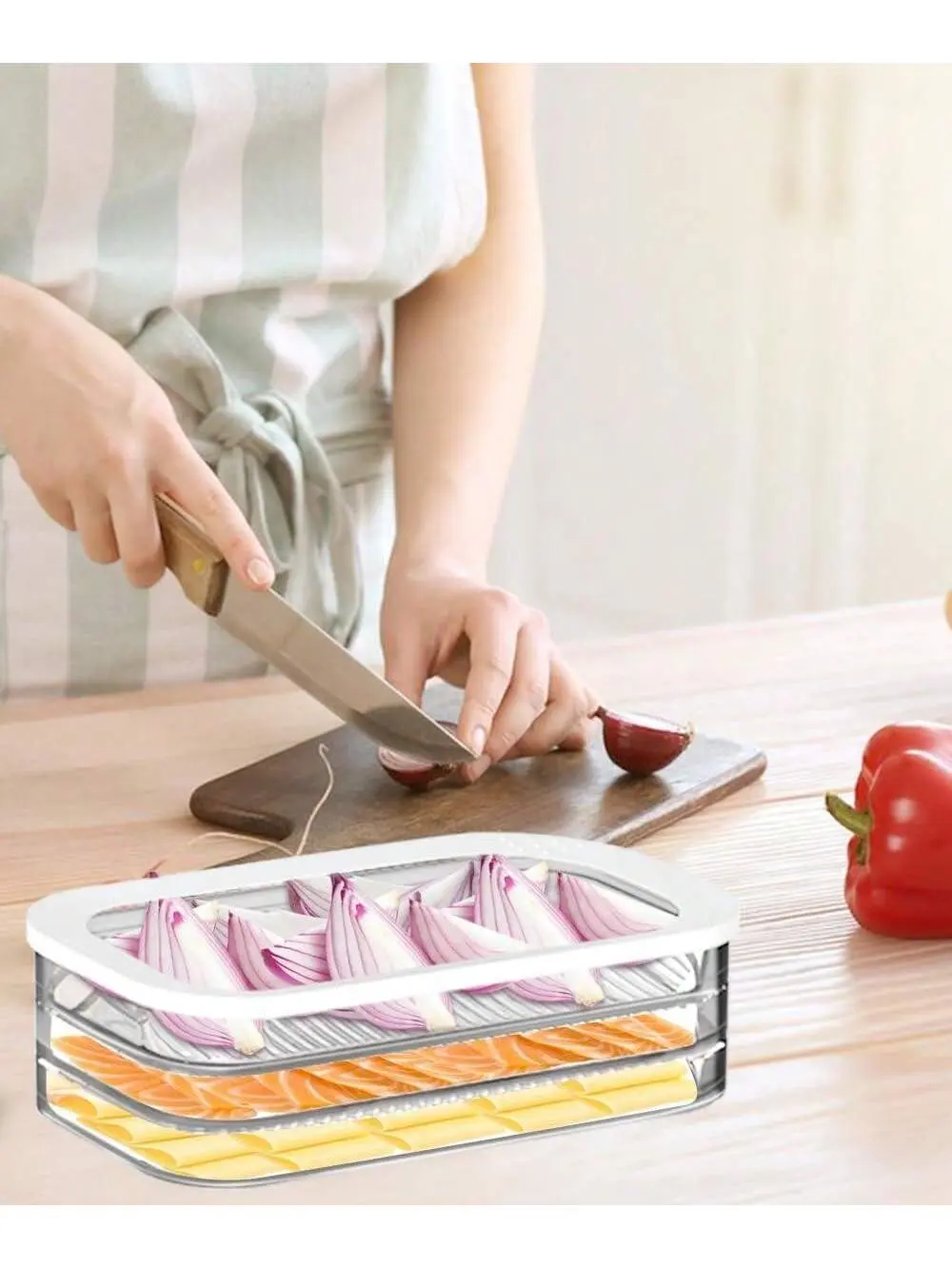 ·Stackable 3 Layers: This deli meat container is designed for refrigerators, featuring 3 stackable layers. Perfect for storing cold cuts, salami, and deli meats. 🥩