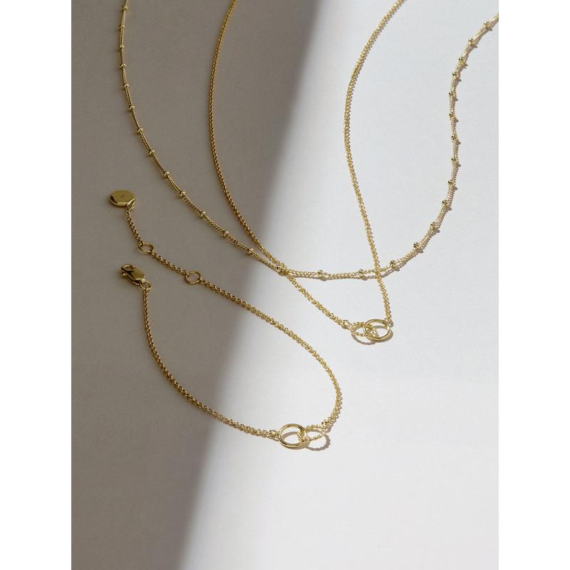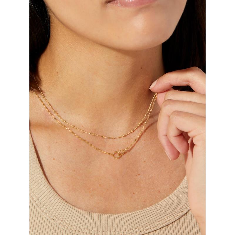 The Delicate Layers Bundle includes three pieces: Interlocking Circles Necklace - Sam, Small Ball Chain Necklace - Ana Gold, Interlocking Circles Bracelet - Jill. This item is not a Gift Set—gifting packaging is not included but can be sold separately.