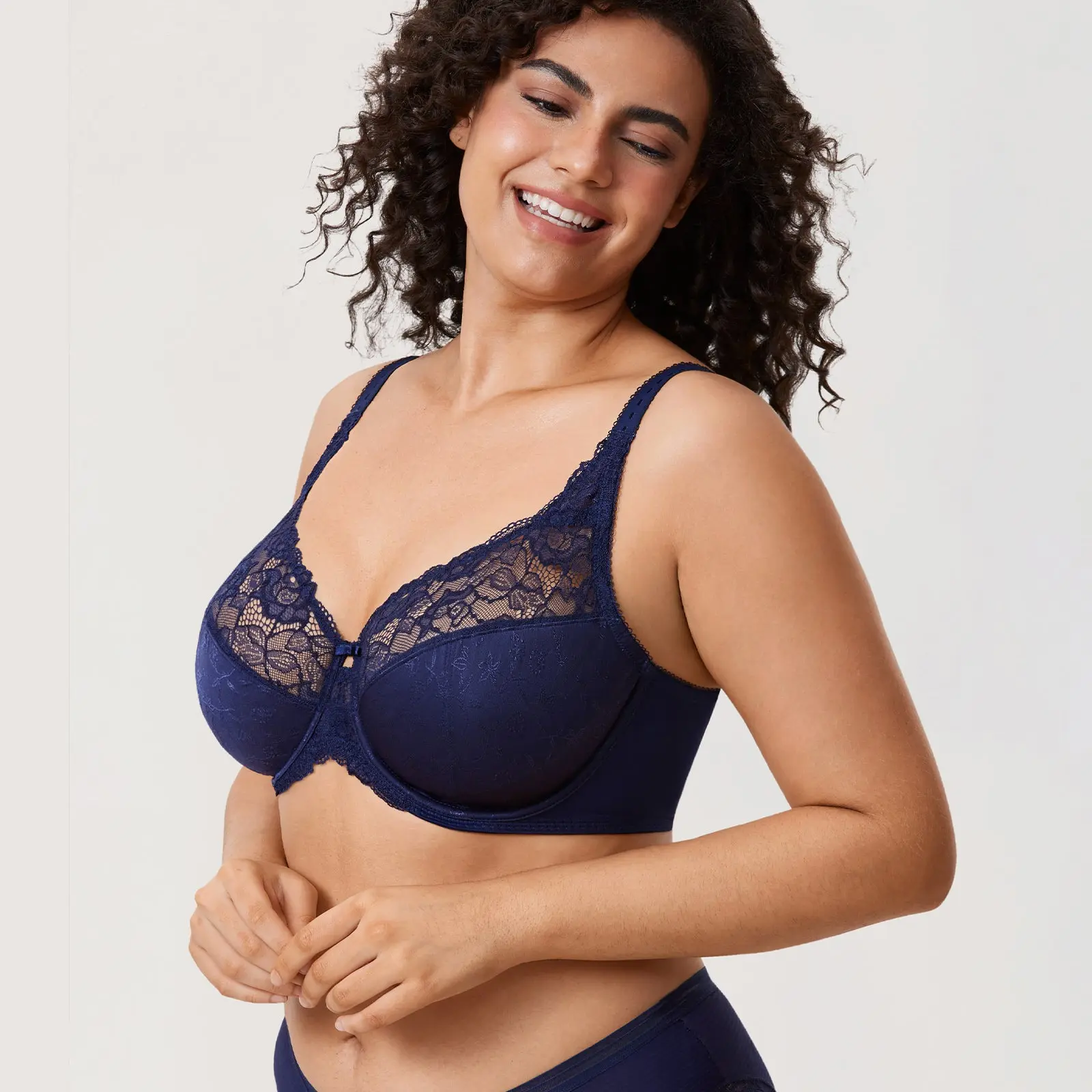 5. DELIMIRA Women's Plus Size Full Coverage Lace Bra Underwire Unlined Adjustable Straps SpringStatements