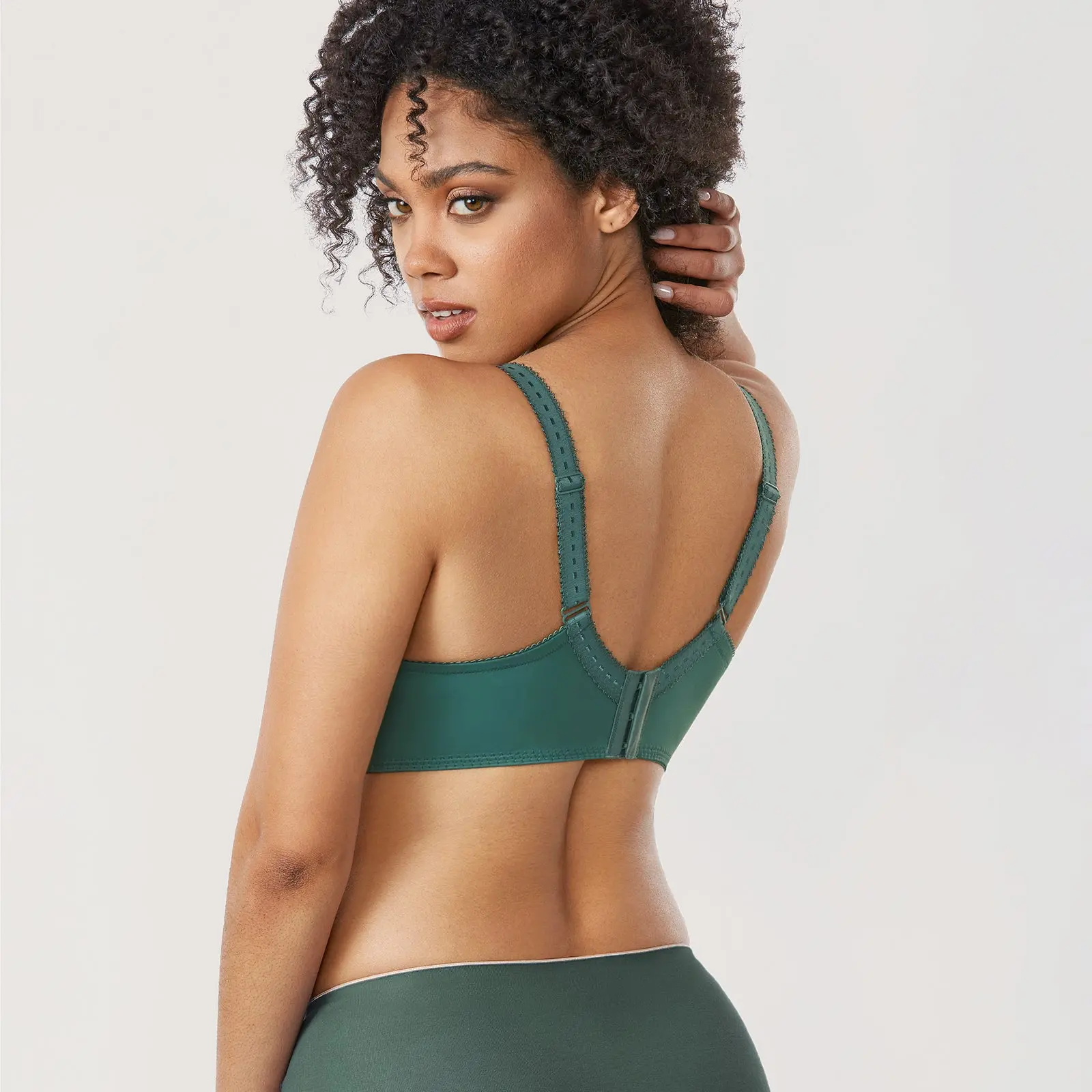 The comfortable soft bra is designed for fuller busts. The non-padded underwired cups are structured to give great support and a naturally enhanced shape. Its a soft and comfortable fabric for the skin to breathe freely. With the lace trim details and textured jacquard design, it adds femininity and sexy.