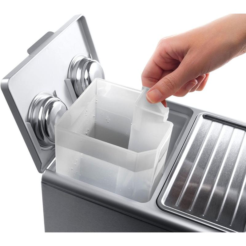 Express espresso. Need a delicious, creamy start to your day? An after-dinner pick-me-up? This Delonghi espresso and cappuccino machine brings the coffee shop to your kitchen by instantly making your favorite drinks. Its three-in-one filtration system even allows you to prepare a perfectly done single or double espresso shot. From DeLonghi.