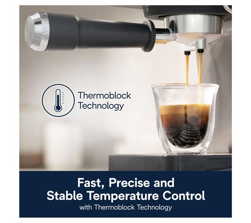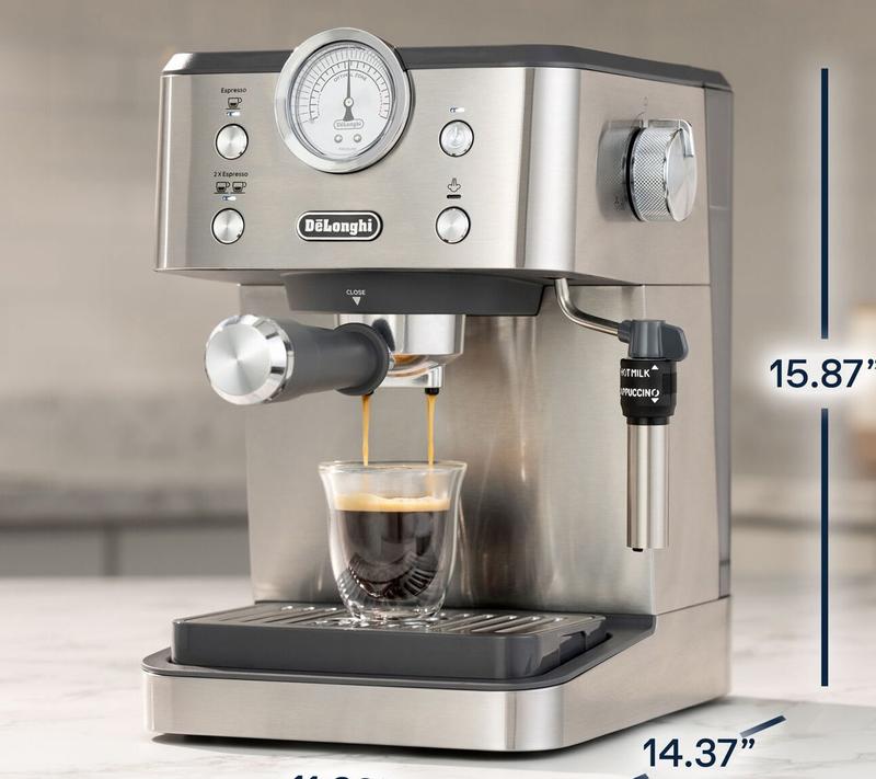 Morning coffee becomes a true treat with this automatic espresso machine, which lets you whip up cafe-style lattes, cappuccinos, and more, right at home. Create rich espresso shots or creamy drinks for friends and family, thanks to the easy-to-use frother and two preset extraction options. Coffee moments get a boost of flavor -- and fun. From De'Longhi.
