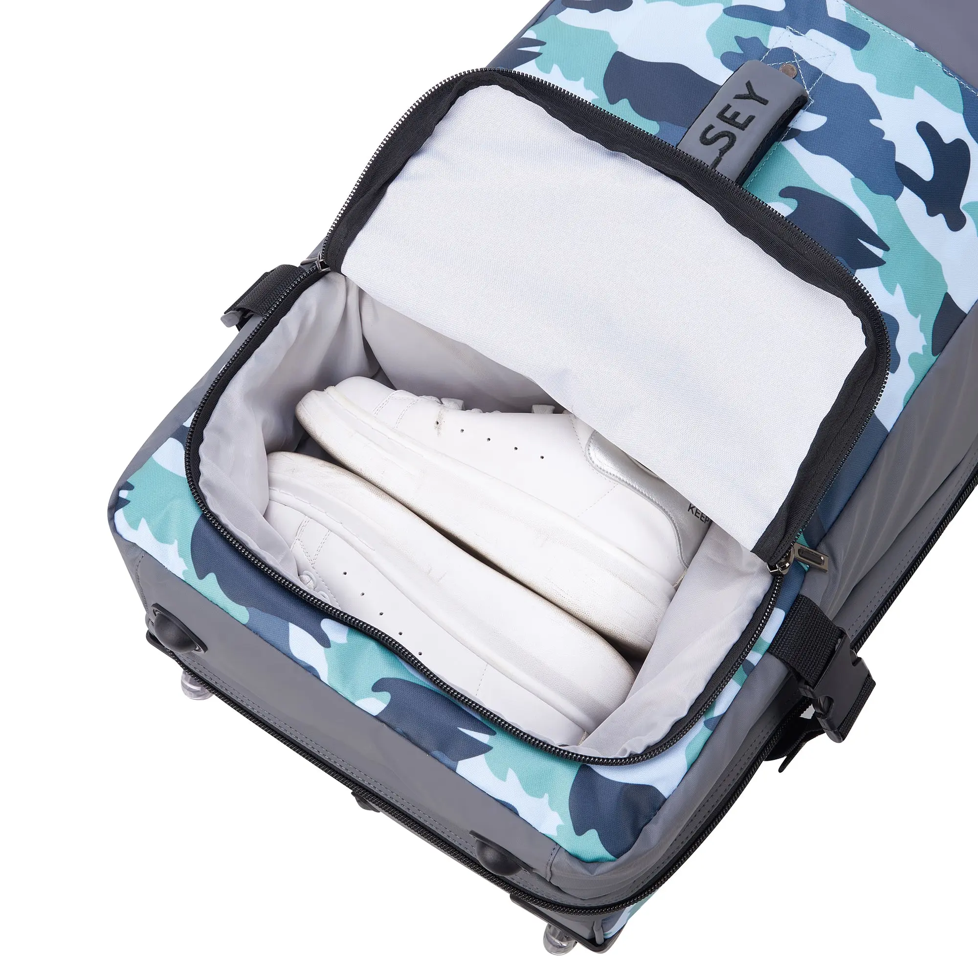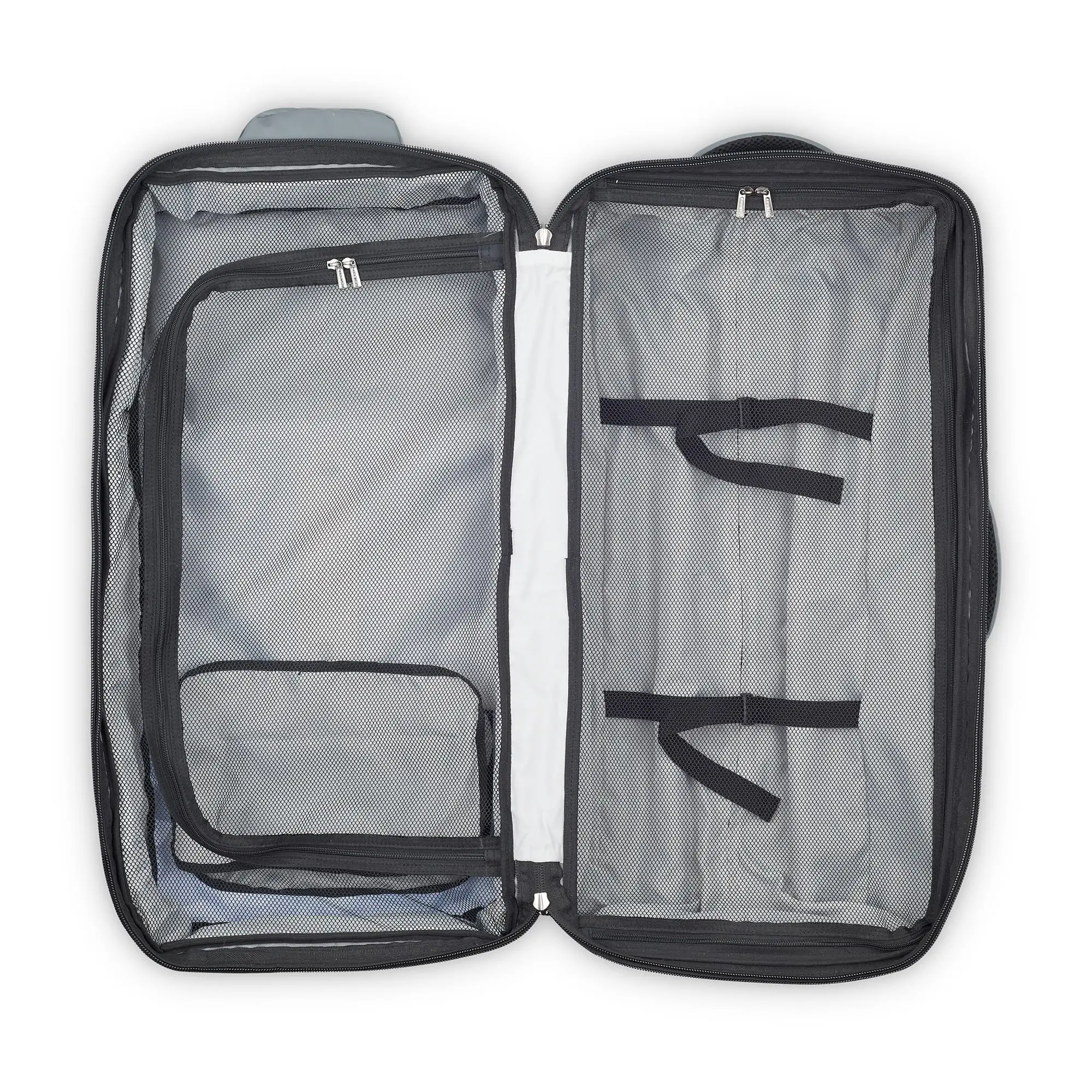 RASPAIL Large Wheeled Duffel combines durability with sustainability. Built from recycled plastic bottles, this water-resistant bag features DELSEY's patented SECURITECH® zipper—three times stronger than standard zips—and a TSA-accepted lock for secure travel. The 50/50 opening splits into two equal compartments, while multiple handles and exterior pockets keep essentials within reach. Stores flat when not needed. Backed by a 3-year limited worldwide warranty.