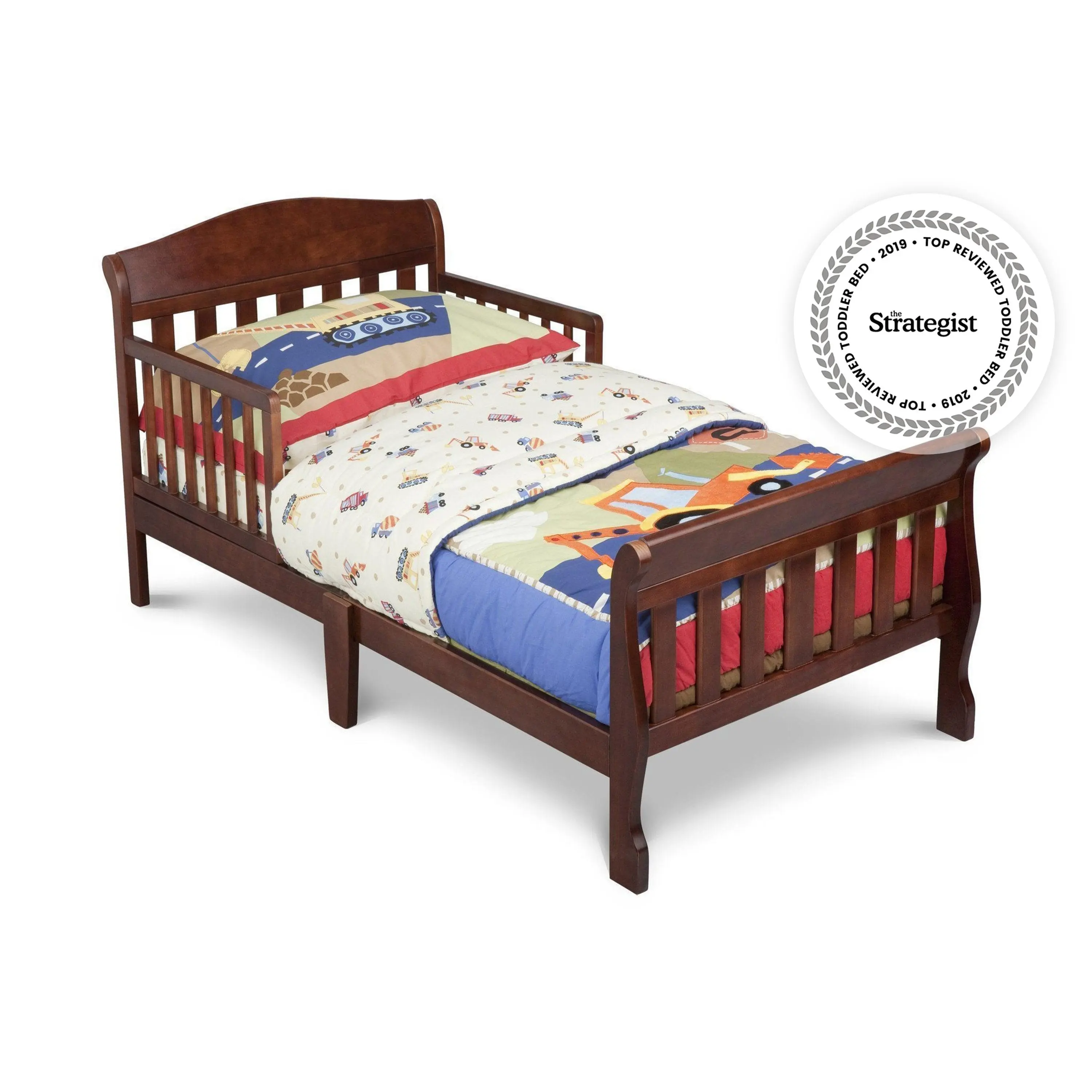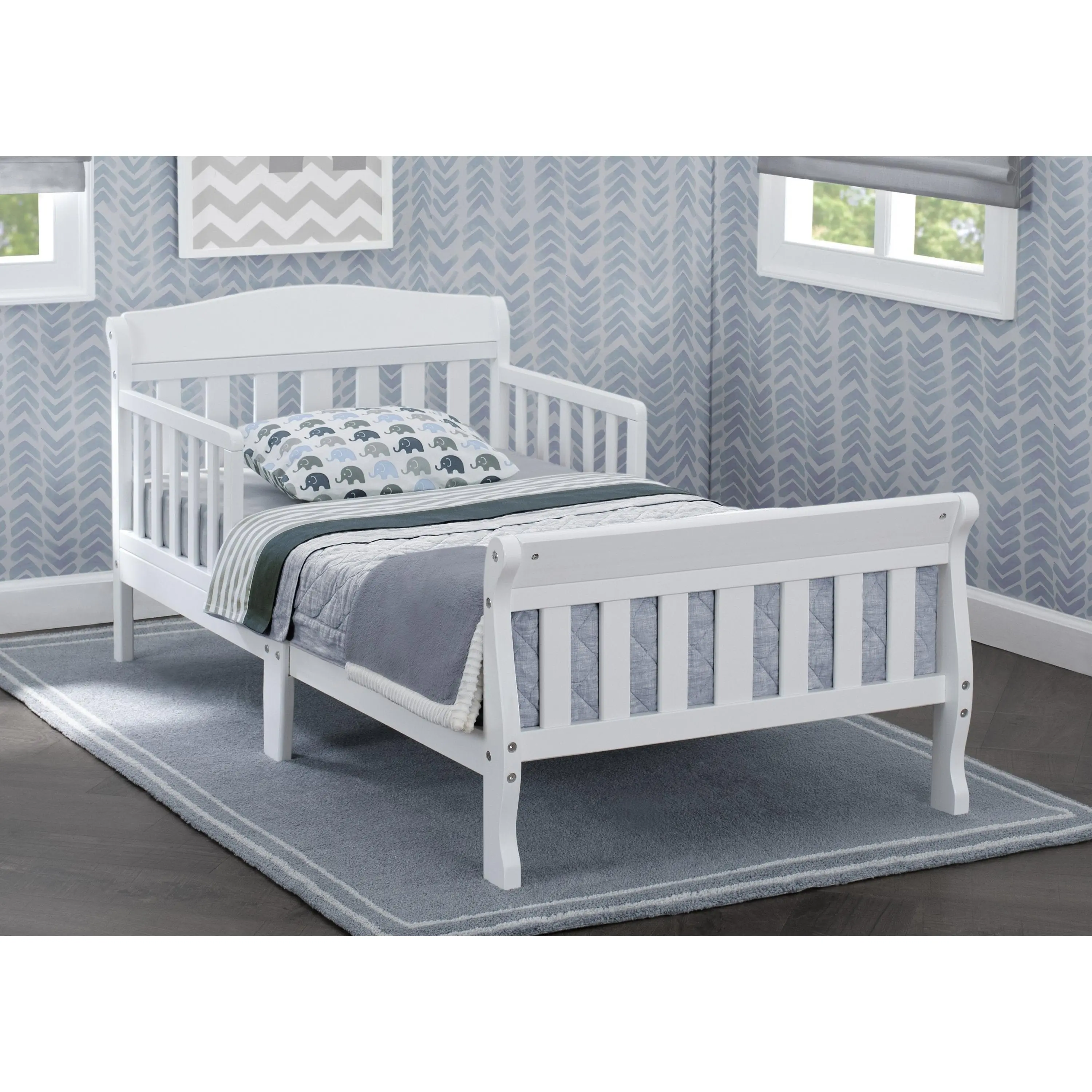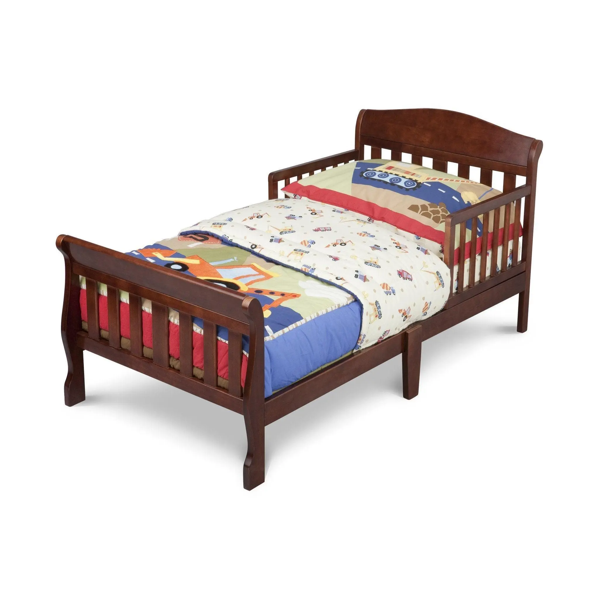 The Delta Children's Canton Toddler Bed features a beautiful, understated silhouette. Built for safety with sturdy wood construction this handsome bed will give your child a feeling of independence and security. Designed to be low to the ground for easy access. Works well with any décor. Easy to assemble, with guardrails that will keep your child safe while sleeping. It's the perfect transition as a child grows from a crib to a full-size bed.